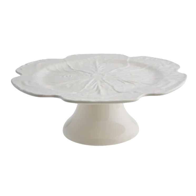 The Bordallo Pinheiro 12" Cabbage Cake Stand Beige is a handcrafted, hand-painted earthenware cake stand from Portugal. The cake stand is part of the iconic Cabbage collection, which Bordallo Pinheiro created to elevate the humble vegetable into an art form. The design features intricate, hand-painted detailing that highlights the organic, rustic beauty of cabbage leaves.