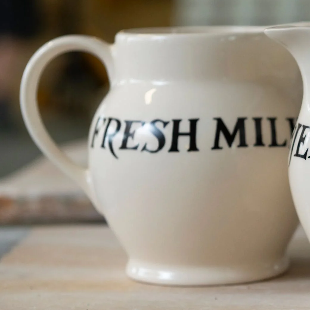 Fresh milk always seems to taste fresher and nicer when poured from a milk jug, such as this Black Toast Jersey Cream 1/2 Pint Jug. As with all Emma Bridgewater pieces in Black Toast, the suggested use is boldly written in black. This is also useful as a water jug on the kitchen table or as a small vase on your desk.