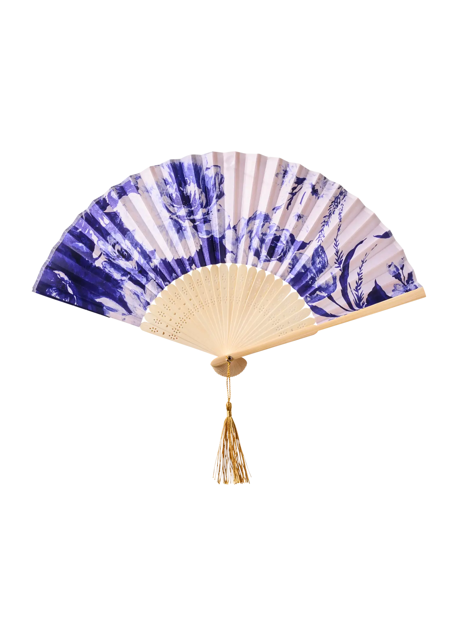China Blue Blooms Satin Fan
