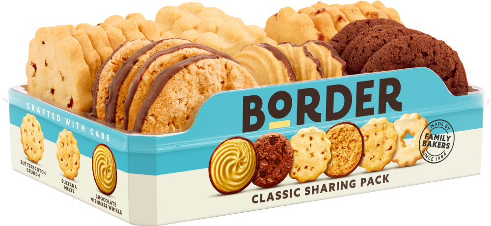 A great selection classic recipes from Border, ideal for sharing! Pack includes:Light & Chocolatey Viennese Whirls, Sweet Memories Butterscotch Crunch, Light & Buttery Chocolate Chip Shortbread, Chocolate Oat Crumbles, Buttery Sultana Melts and Divinely Chocolatey Cookies.