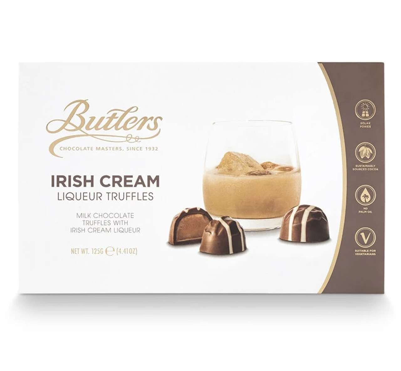 Butlers created the creamiest white chocolate truffles, kissed with soft Irish Cream liqueur and covered in a decadent milk chocolate shell. Now, they are in a very giftable box.