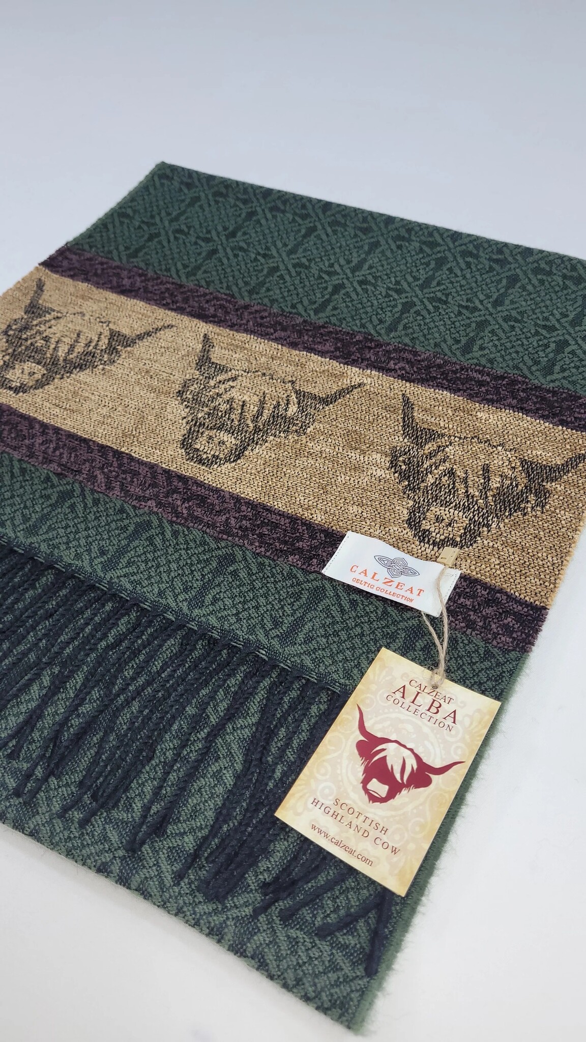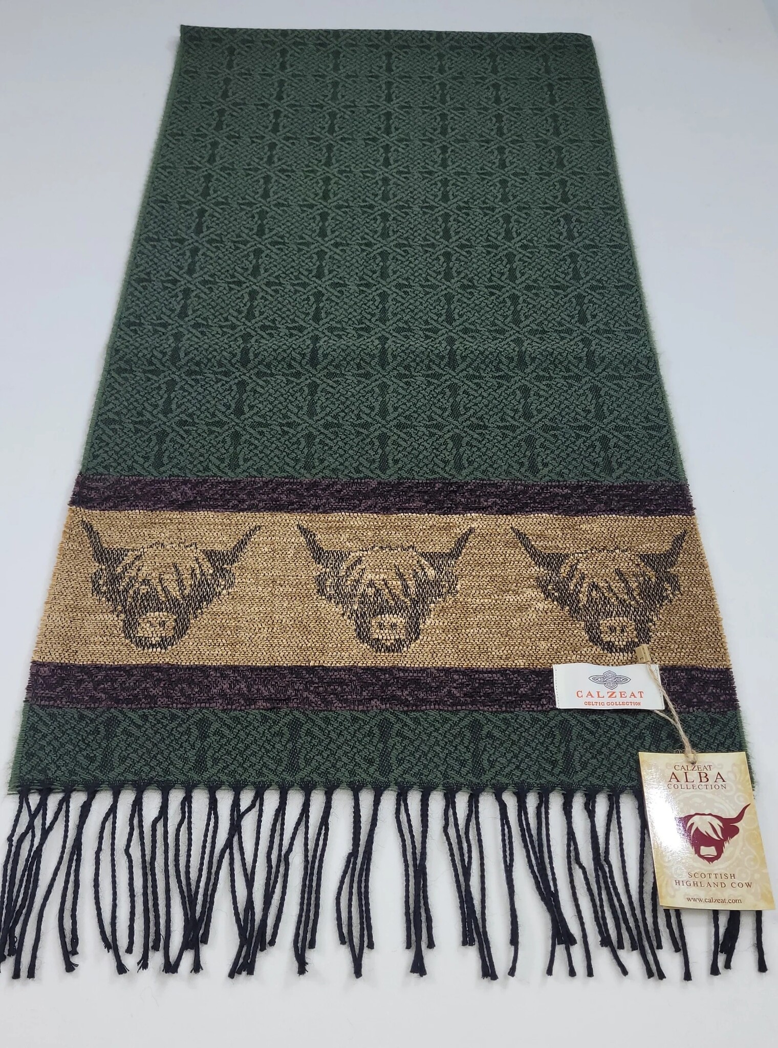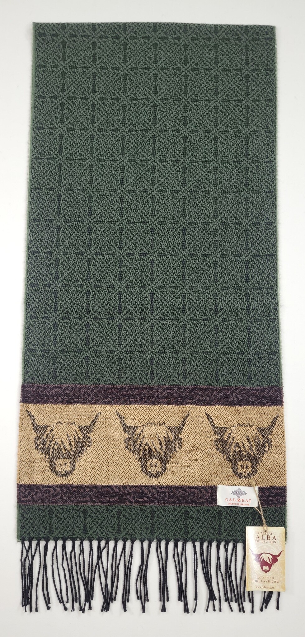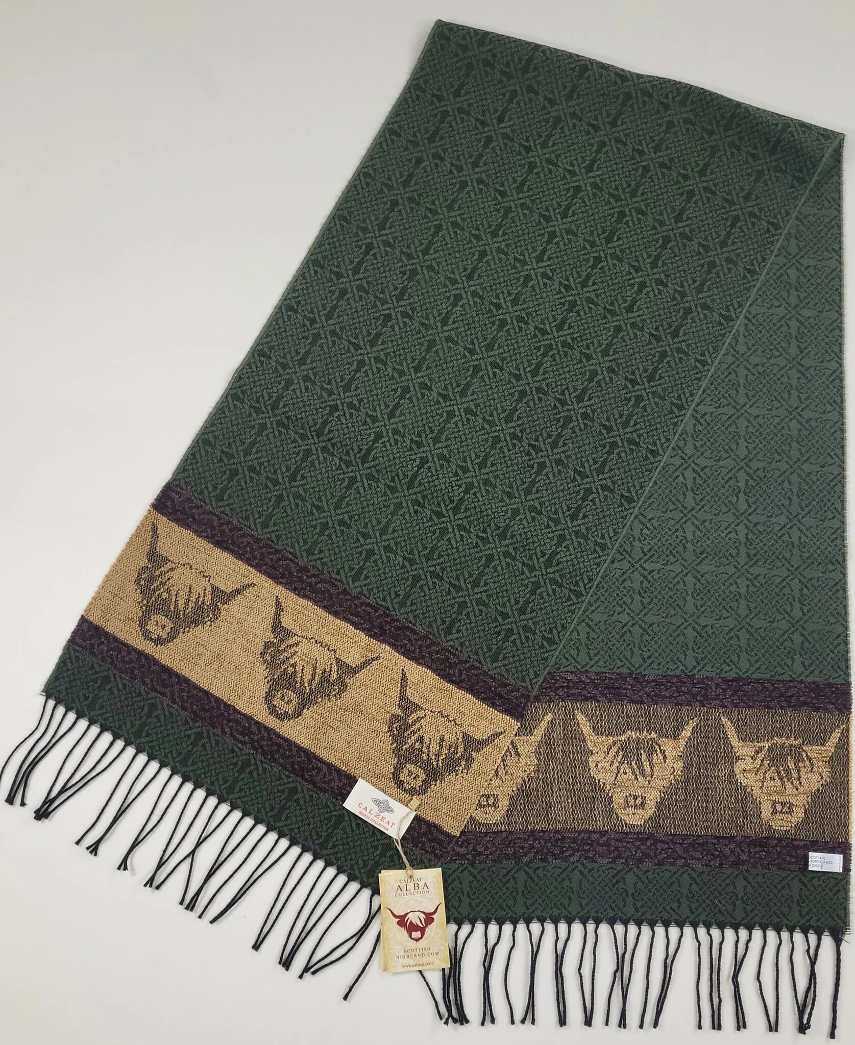 Calzeat of Scotland Celtic Alba Highland Cow Loden Jacquard Scarf