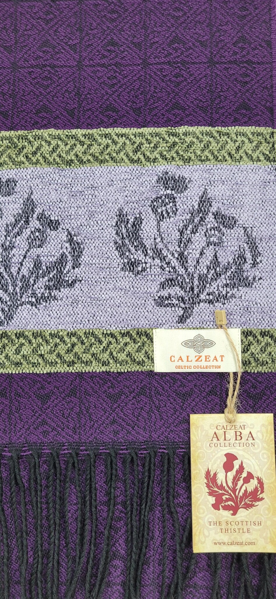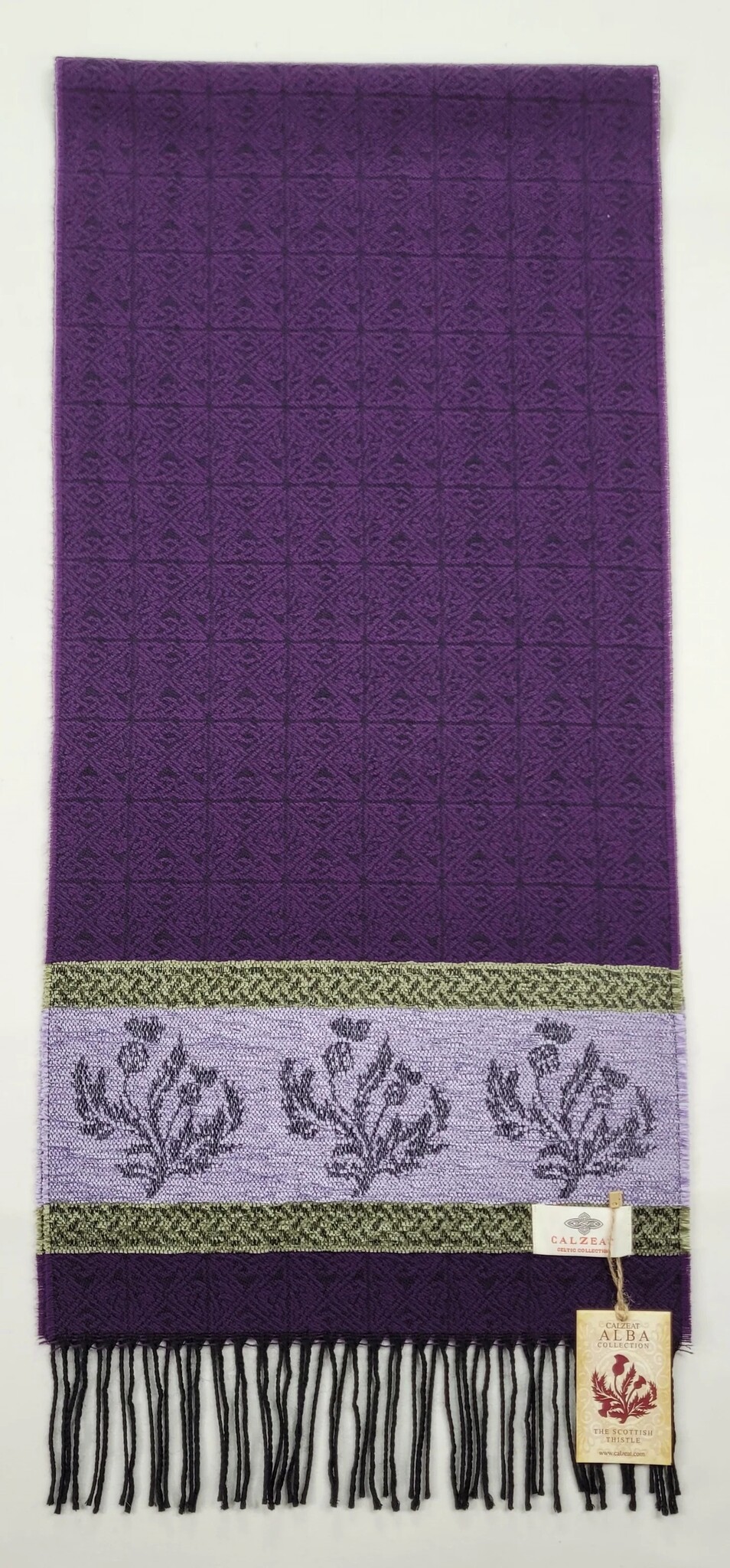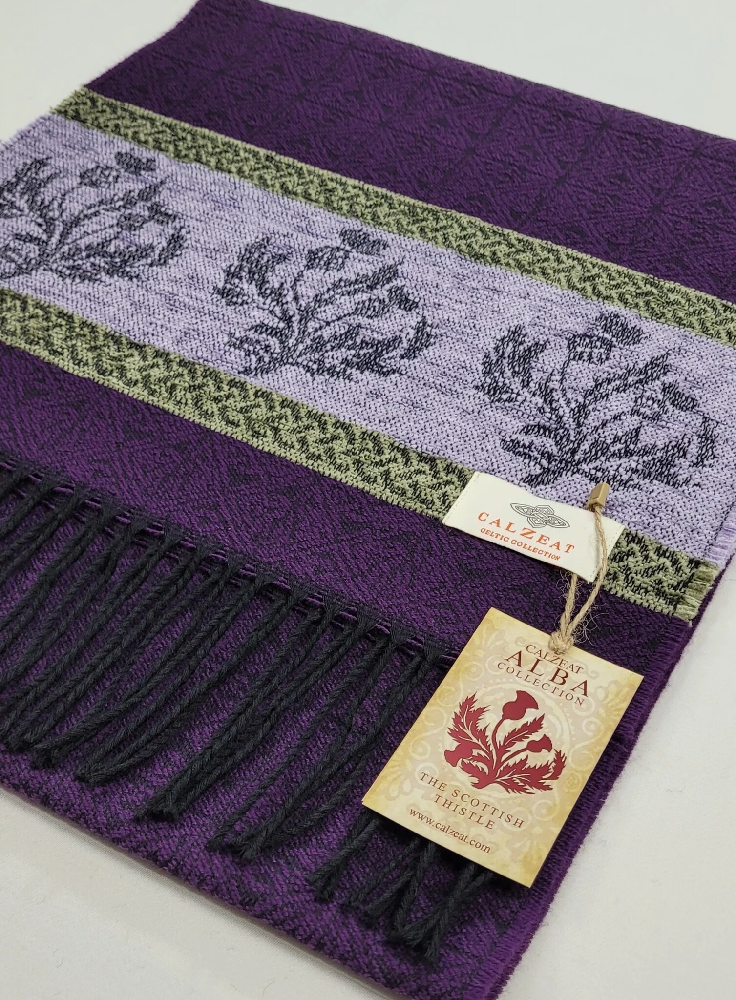 Calzeat of Scotland Celtic Alba Thistle Purple Jacquard Scarf