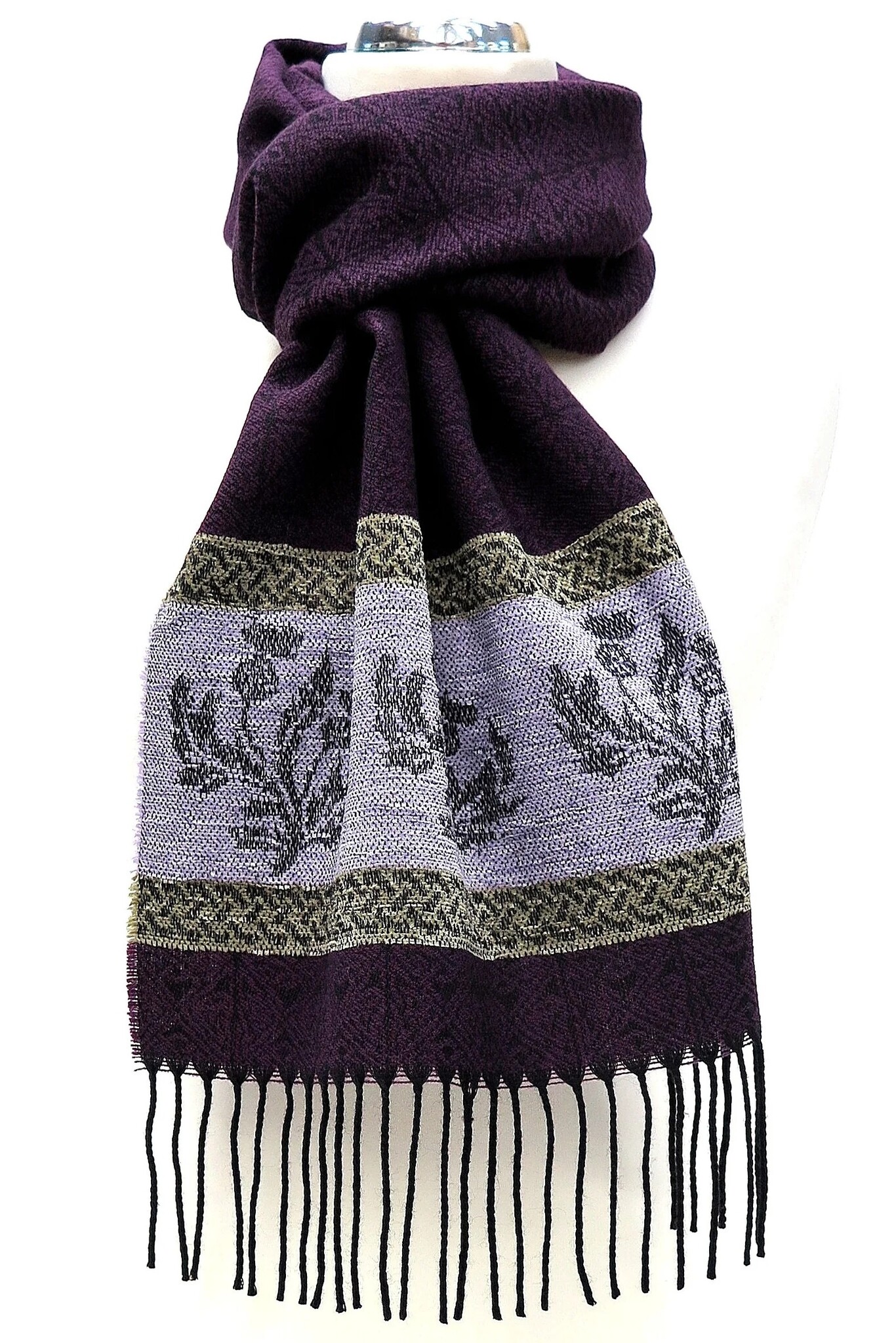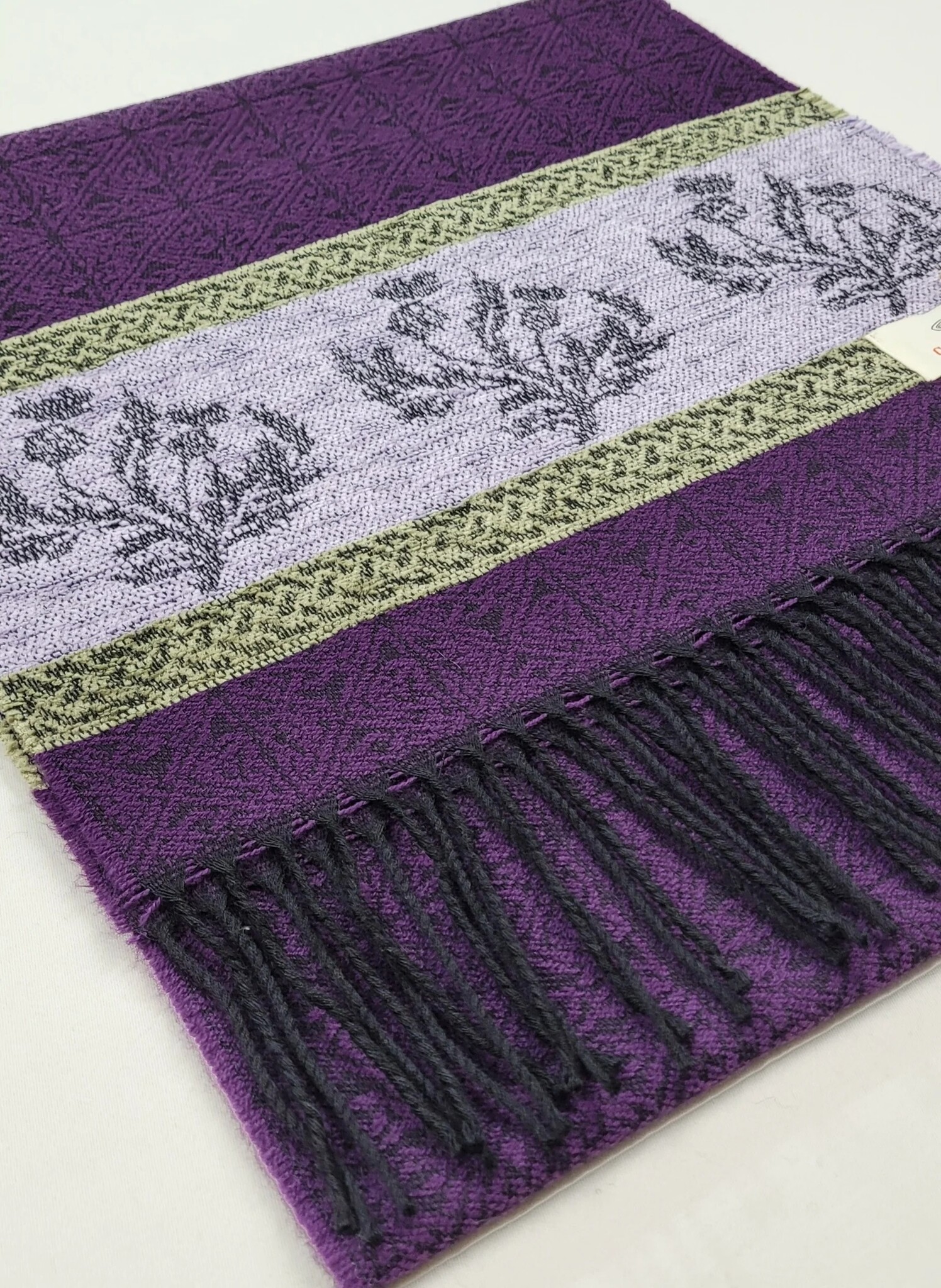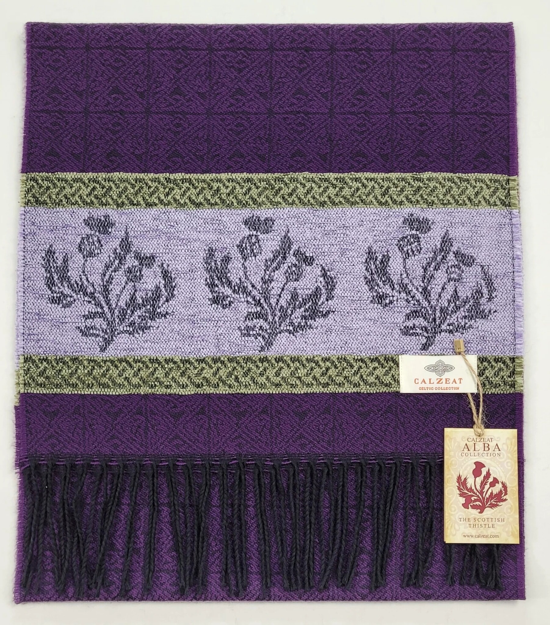 Calzeat of Scotland Celtic Alba Thistle Purple Jacquard Scarf