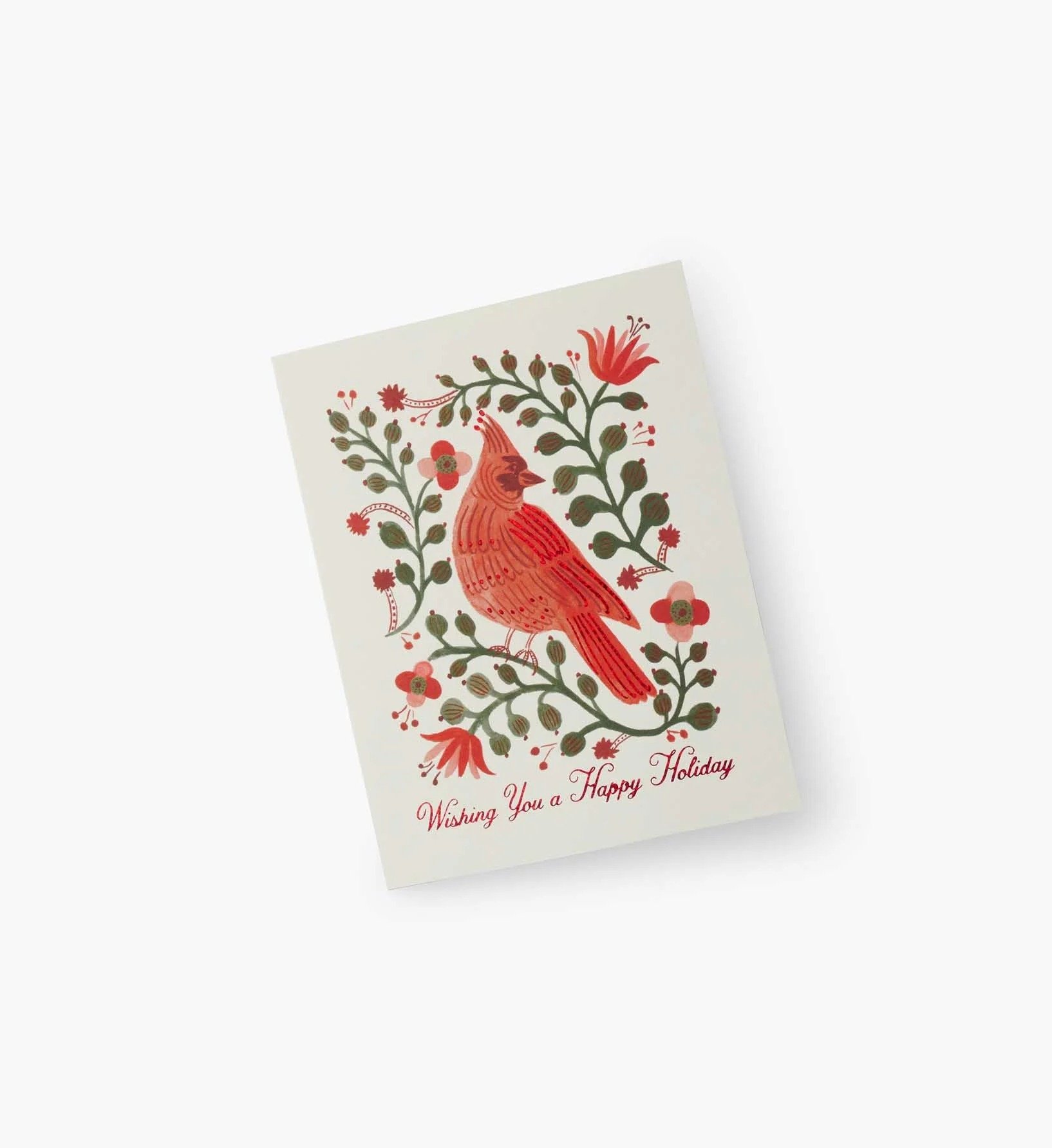 Send warm holiday greetings to your loved ones this season on this holiday card with red foil embellishments. The front reads, "Wishing You a Happy Holiday". A blank interior lets your handwritten note take center stage.