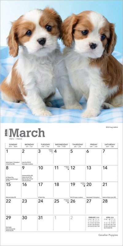 Cavalier King Charles Spaniel Puppies 2026 Mini Wall Calendar