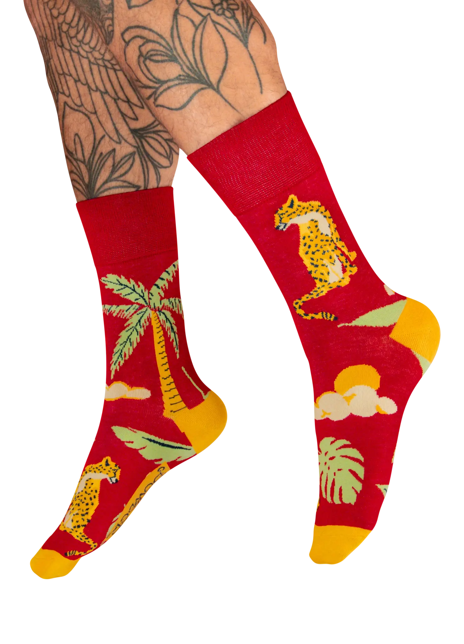 Always be spotted! Channel your true self with these chilled cheetah socks in raspberry. Leading in style and with comfort, the purr-fect socks!
