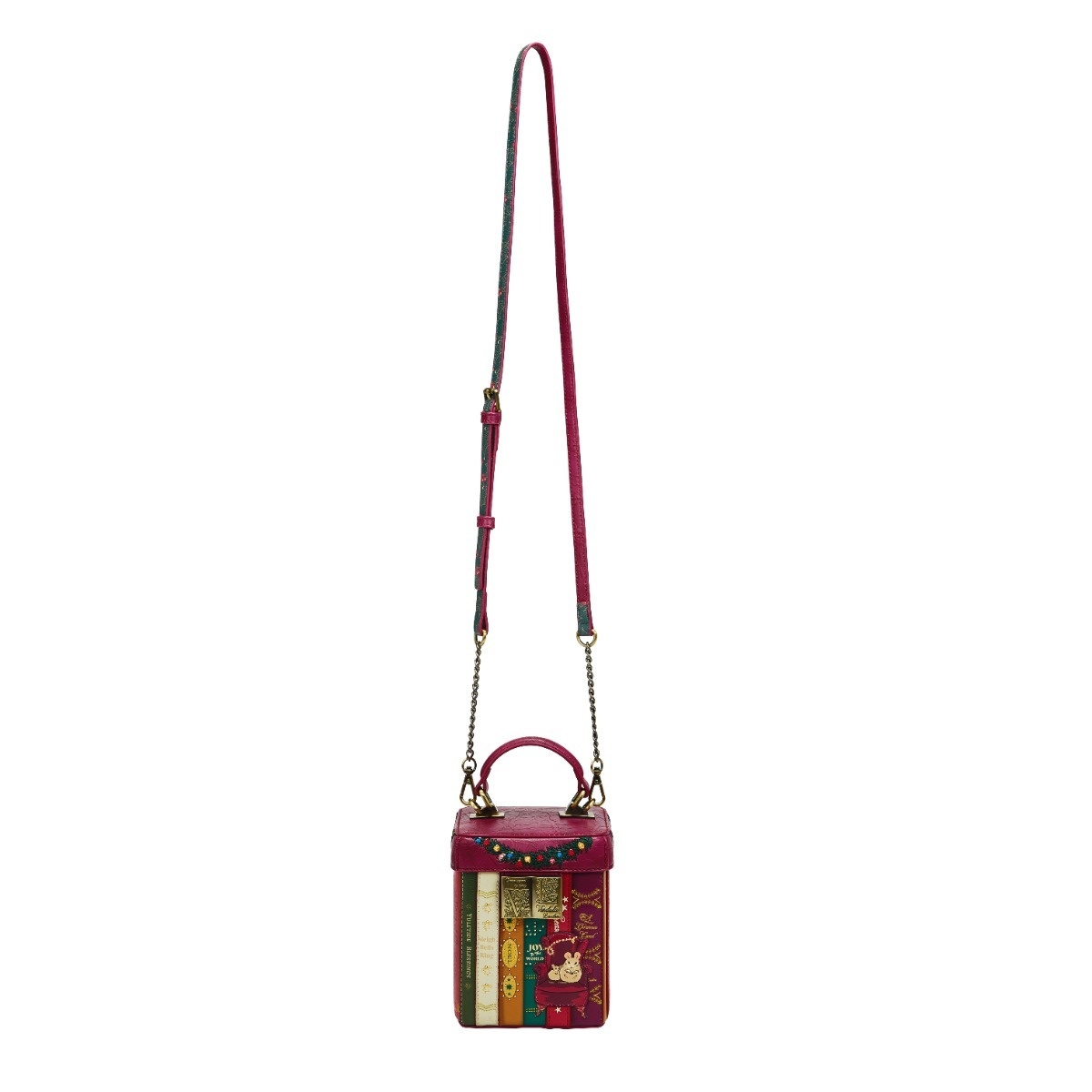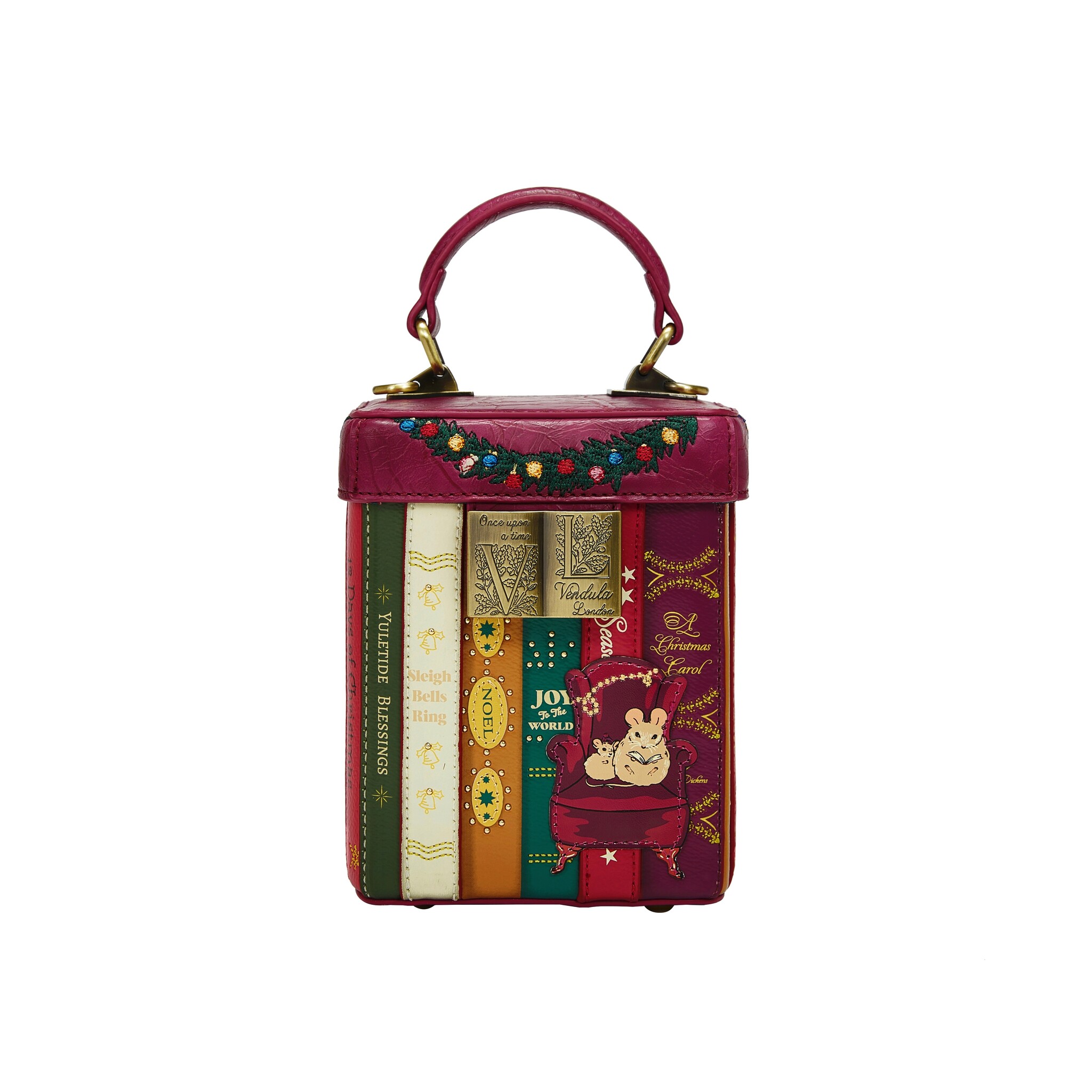 The Vendula Christmas Library Book Box Bag, a festive take on a Vendulettes classic, introduces a charming holiday bookshelf brimming with seasonal stories. Carry it by the handle or with the detachable adjustable strap. The book-shaped clasp adds a vintage touch while keeping your essentials safe. Decorated with warm colours and intricate stitched details, this statement bag will captivate everyone around you.