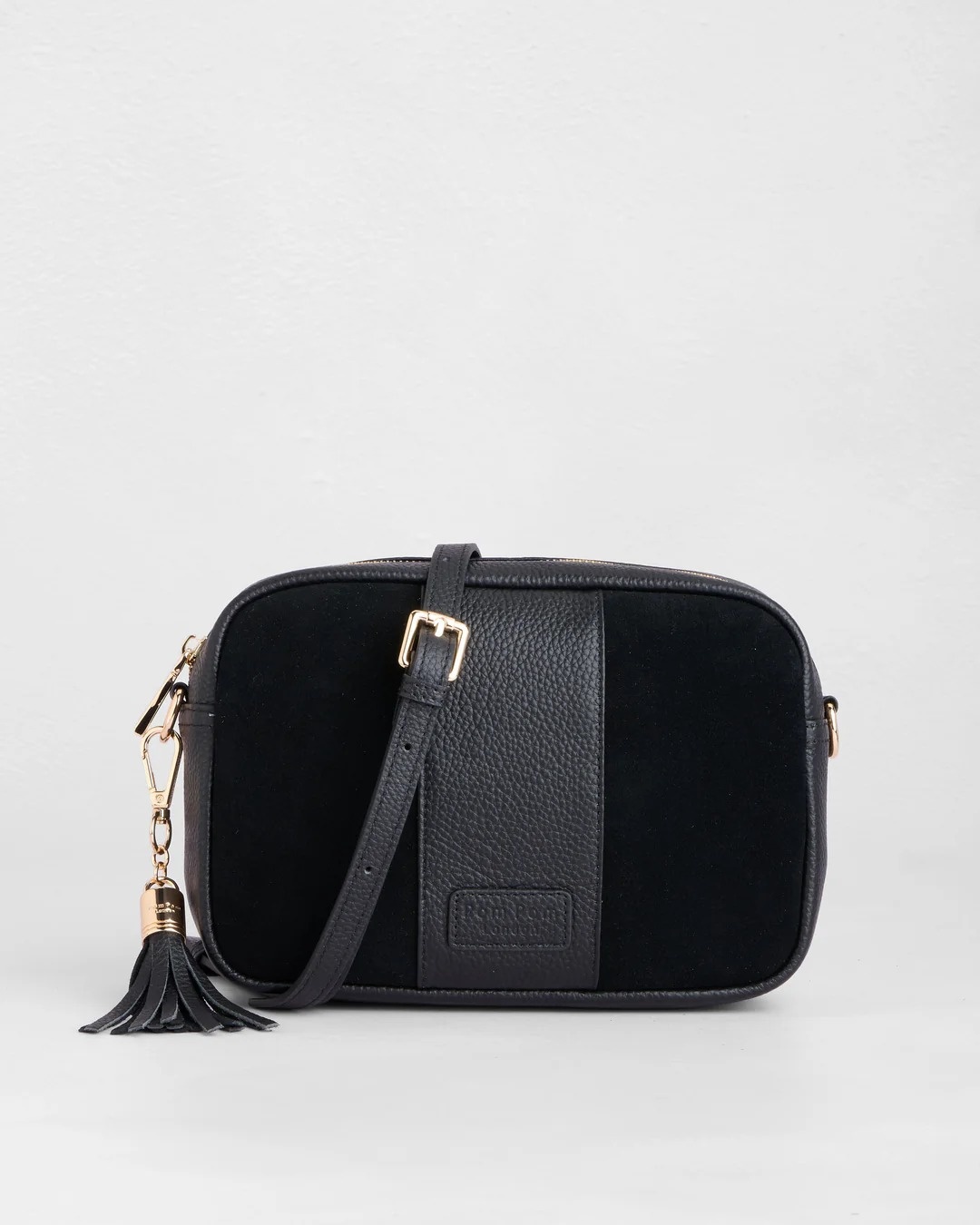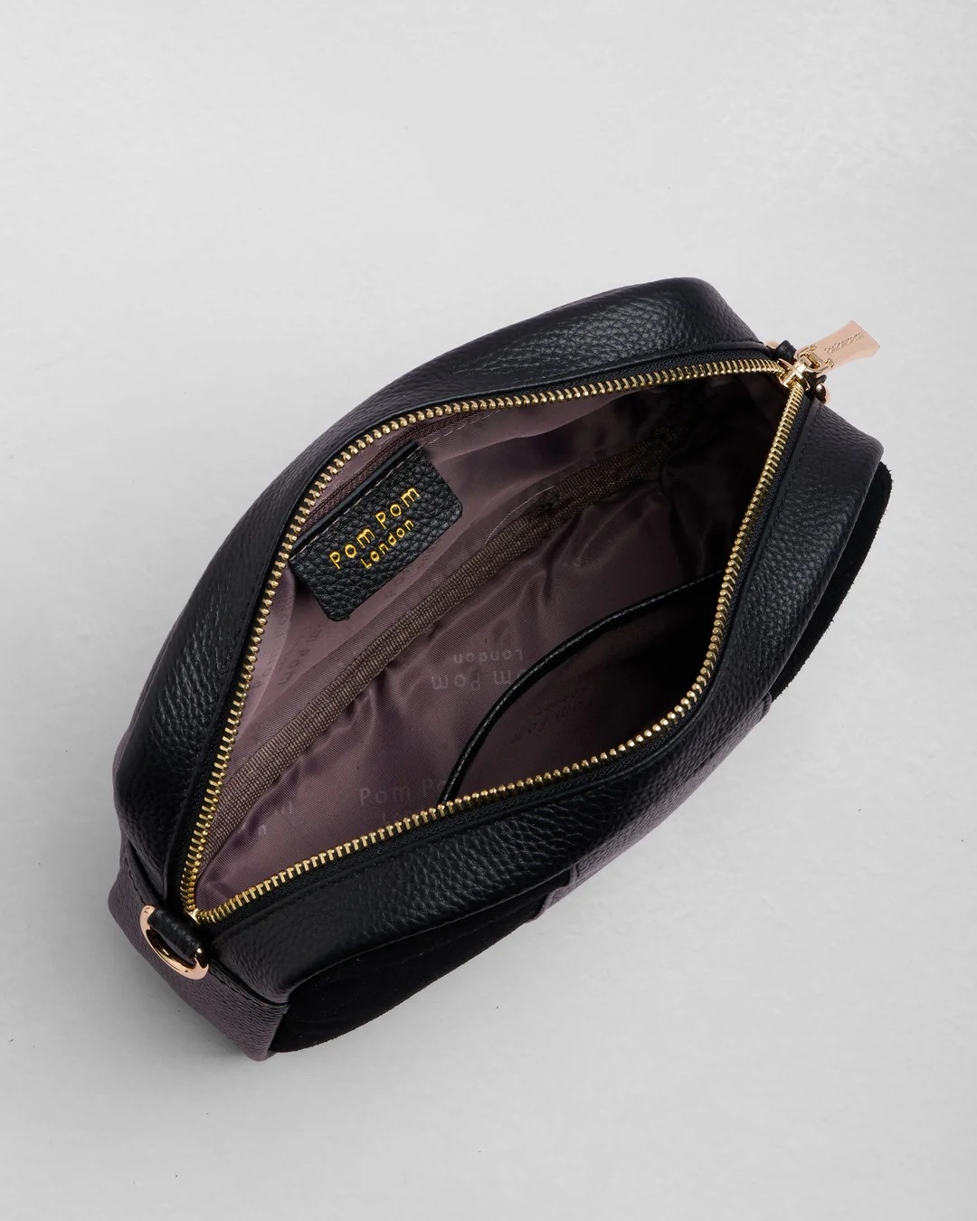 Elegant, timeless, and effortlessly chic: the City Suede and Leather Bag in Black is classic in style. Its smooth leather with suede detailing brings a refined touch to any outfit. It has two external zip compartments for quick access to your essentials and a double-reinforced leather base to ensure durability. Perfect for those who appreciate the finer things in life, this bag captures sophistication and versatility.