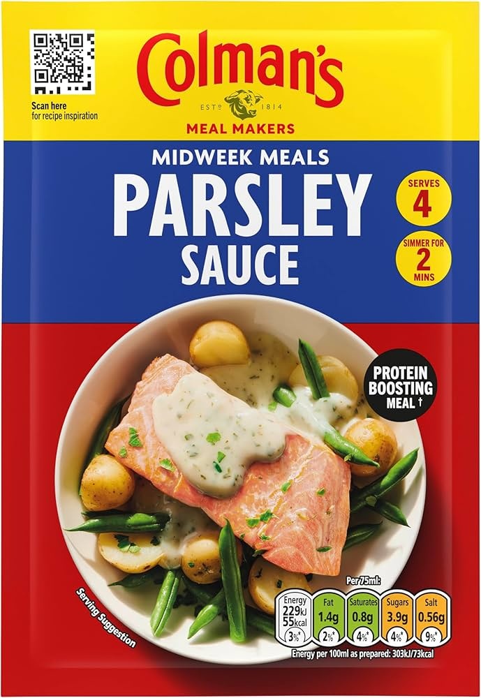 A parsley sauce mix with nutmeg – just add milk to this sauce mix for the perfect accompaniment to white fish or gammon.