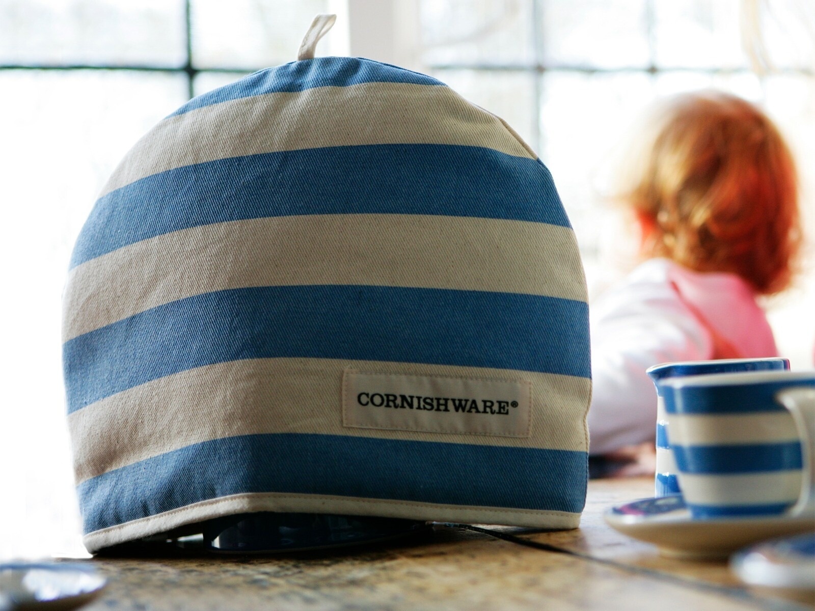 This tea cosy in the blue Cornishware pattern is a beautiful way to dress up a teapot and keep your brew nice and warm at the same time.