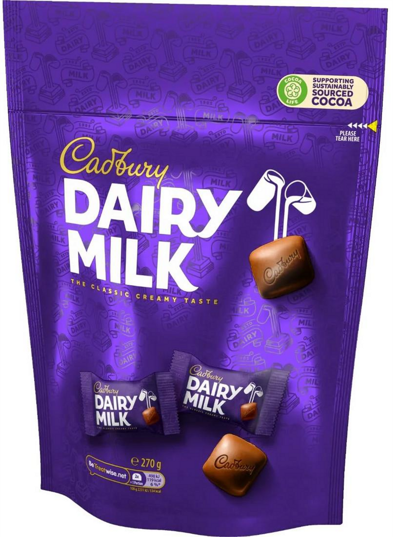 Made with rich milk chocolate, this 270g pouch is perfect for snacking or sharing.