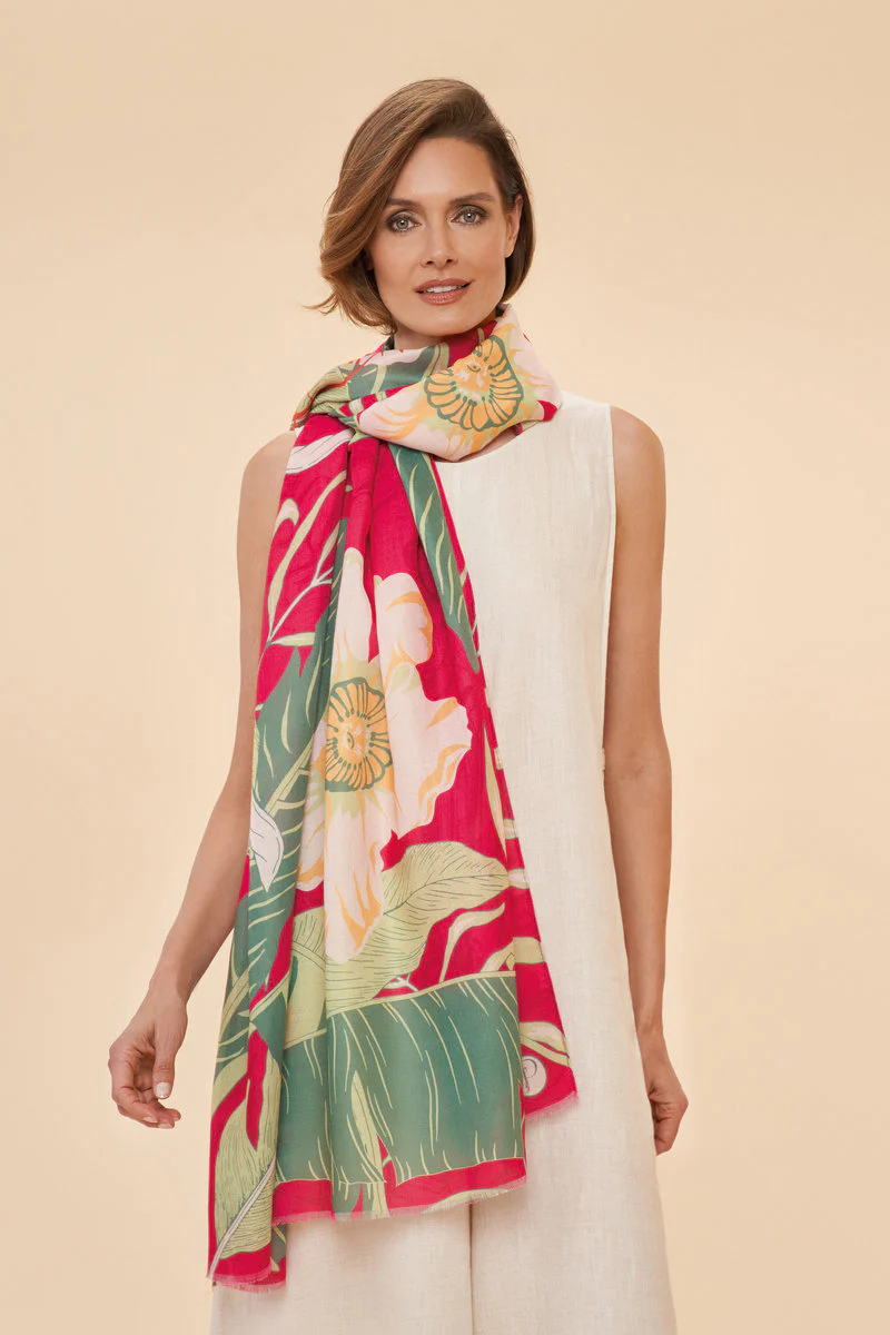 Delicate Tropical Dark Rose Print Scarf