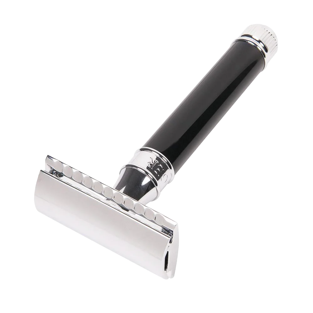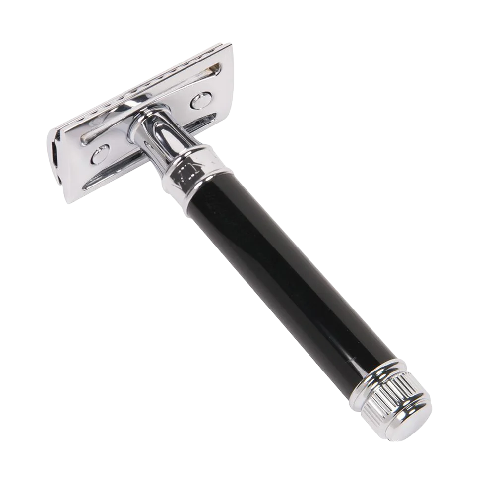 The Edwin Jagger DE Safety Razor with an Ebony handle is a popular 3-piece, closed-comb razor, celebrated for its stylish, durable, and lightweight imitation ebony handle. Made in Sheffield, England, it features a high-quality, hand-polished chrome-plated head designed for a mild yet precise, close shave, making it excellent for beginners and those with sensitive skin. Ideal for the beginner, this razor provides a very close shave, helping to reduce ingrowing hairs and irritation.