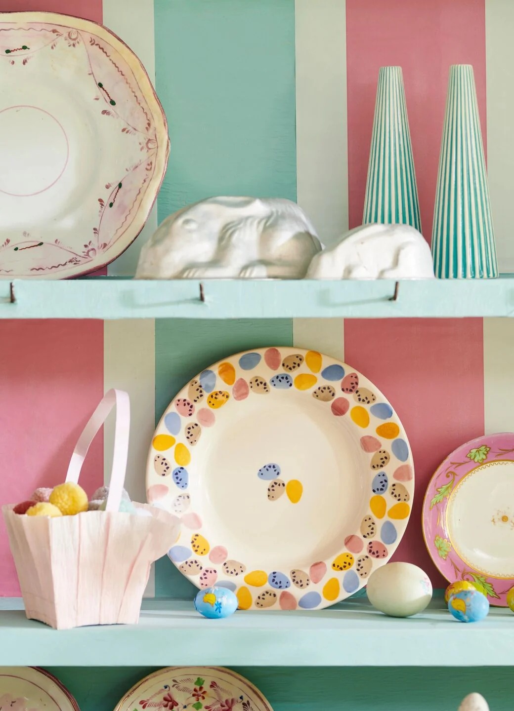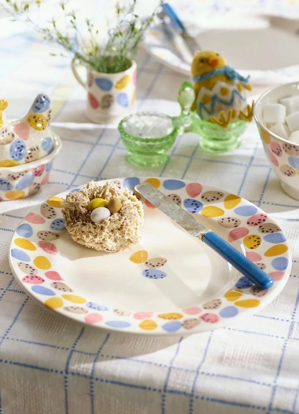 Serve up a super-easy family Easter treat: chocolate nests filled with mini chocolate eggs, presented on this Mini Eggs Medium Dinner Plate from Emma Bridgewater.