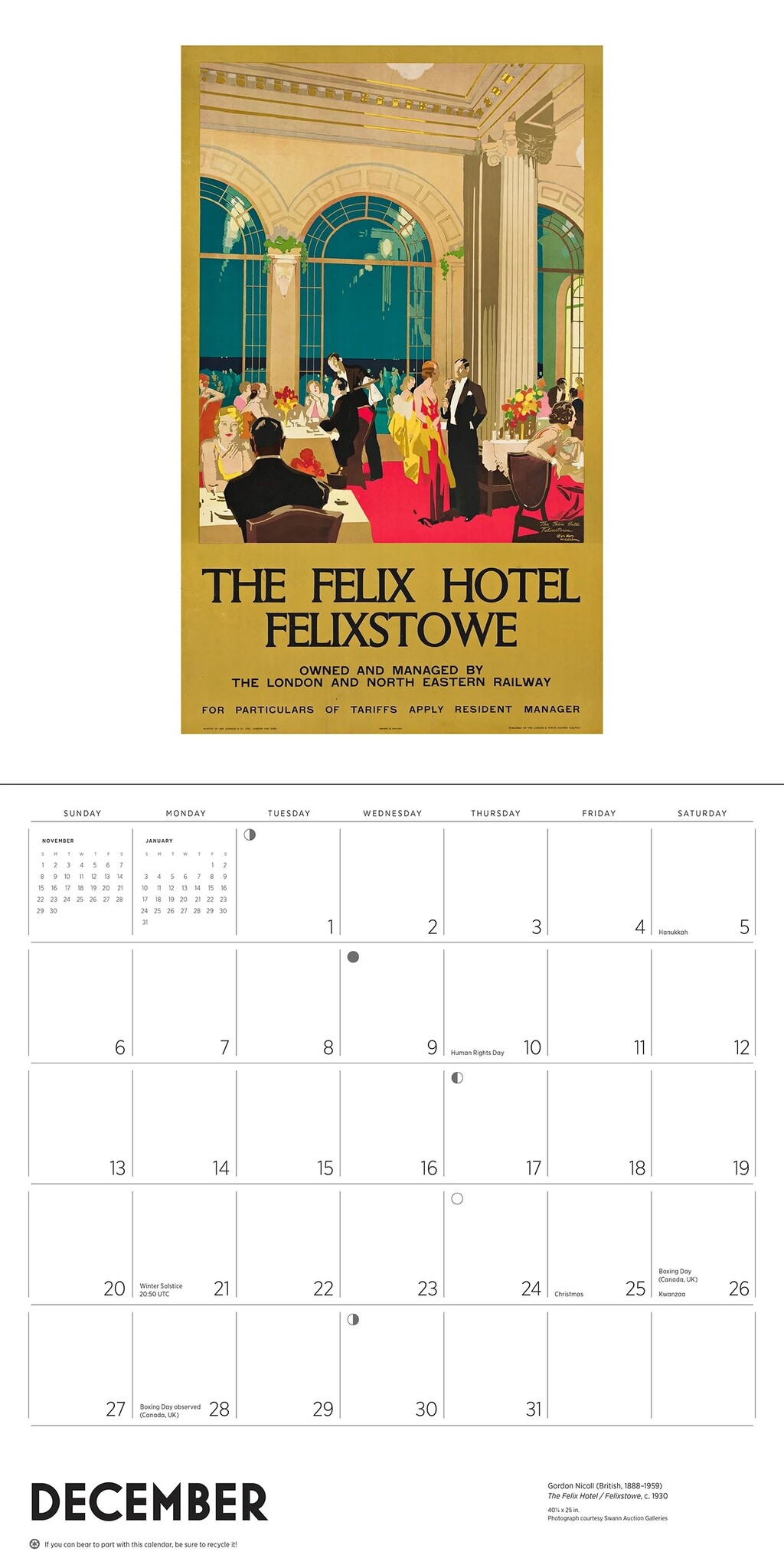 With 12 monthly grids and full-color artwork, this England travel poster wall calendar for 2026 is printed with soy-based inks on premium, environmentally sourced paper stock. It features US, Canadian, and United Kingdom legal holidays.