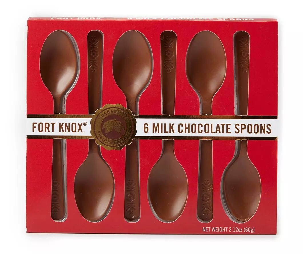 Enjoy decadent milk chocolate bites with these spoon-shaped treats from Fort Knox. Whether you're enjoying them solo or pairing them with your favorite ice cream or whipped cream, these spoons are a unique and delicious way to satisfy your sweet tooth.
