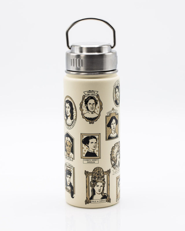 Here's a travel flask dedicated to some amazing ladies who helped change the course of scientific history. Let them inspire your next breakthrough while you enjoy your hot coffee, ice water, or cold brew at your own pace. Hats off to the Great Women of Science—past, present, and future. With a textured design for a unique tactile experience, this flask will keep your drink hot or cold until you're ready to enjoy it. It is double-walled and vacuum-sealed, with a silicone ring. Hand wash only.