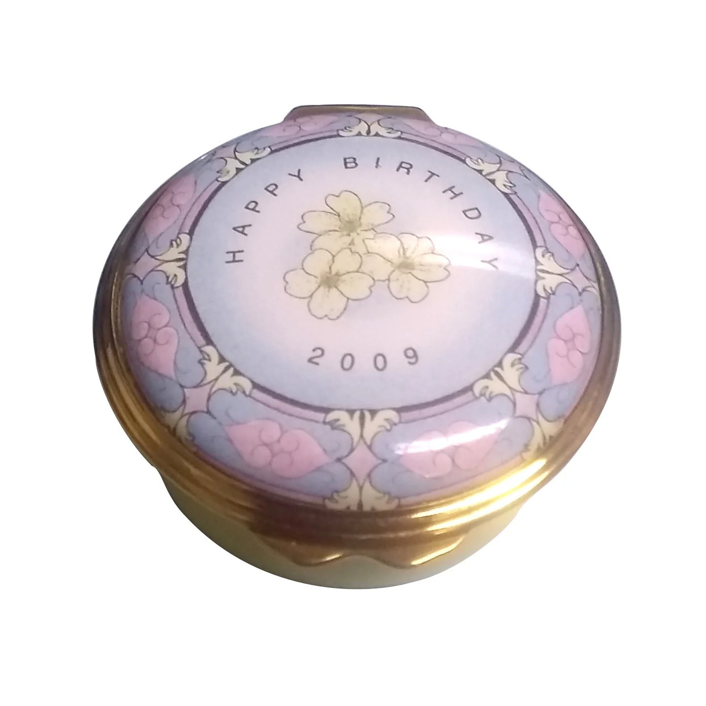 This enamel box from Halcyon Days is the perfect gift for someone born in 2009. The colors are delicate pastels, and the lid features a floral design and the words "Happy Birthday 2009".