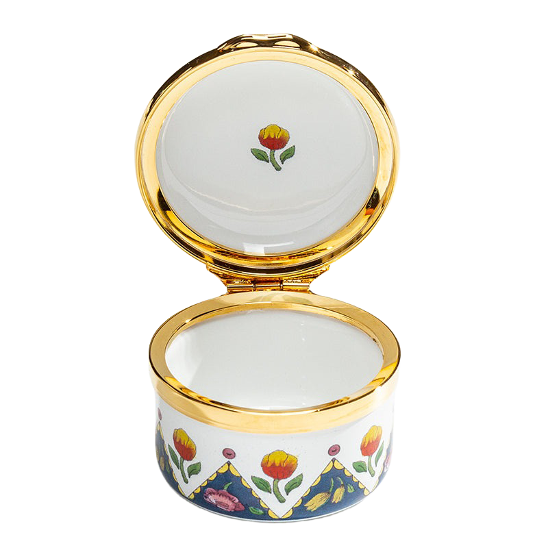 Halcyon Days created this handcrafted enamel trinket box for a beautiful way to mark a birthday. Its elegant blue and white color scheme is embellished with a delicate floral design that infuses elegance into any space.