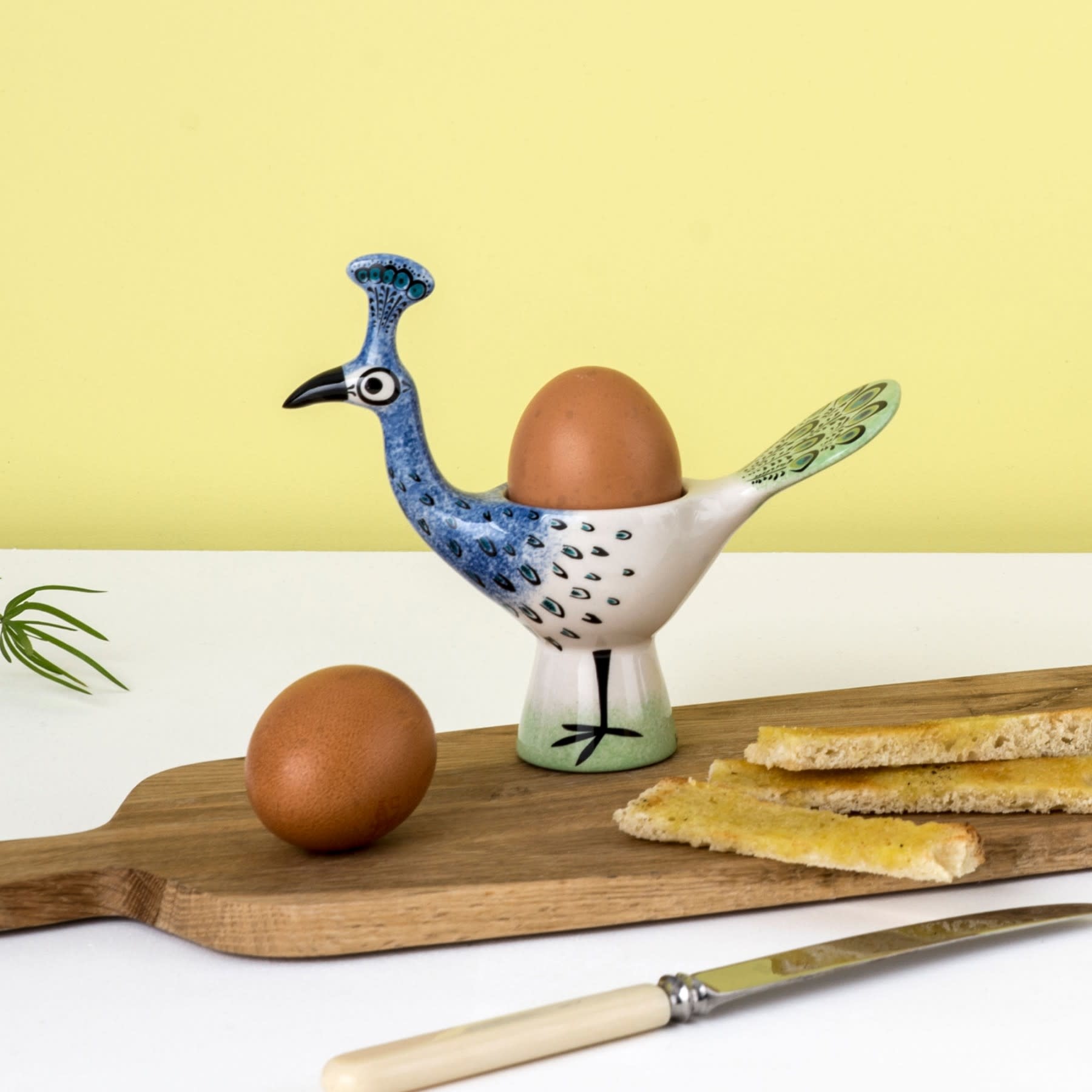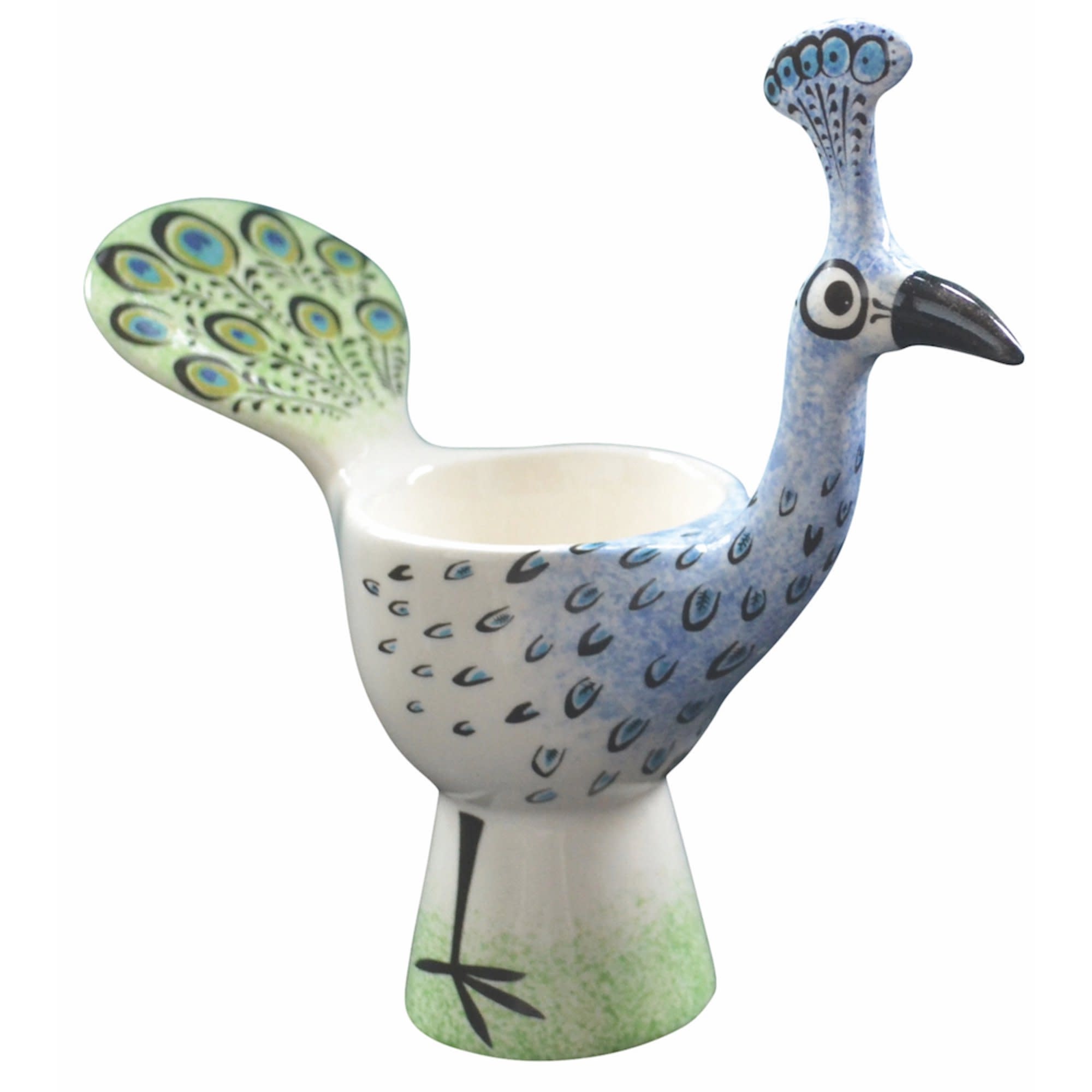Inspired by a Sri Lankan antique carving and the Peacocks strutting around Corsham Court, where Hannah used to live, this egg cup will bring a fun bit of whimsy to breakfast. Handmade in Sri Lanka from high-fired ceramic with a decal decoration. Hand wash only; not microwave safe.