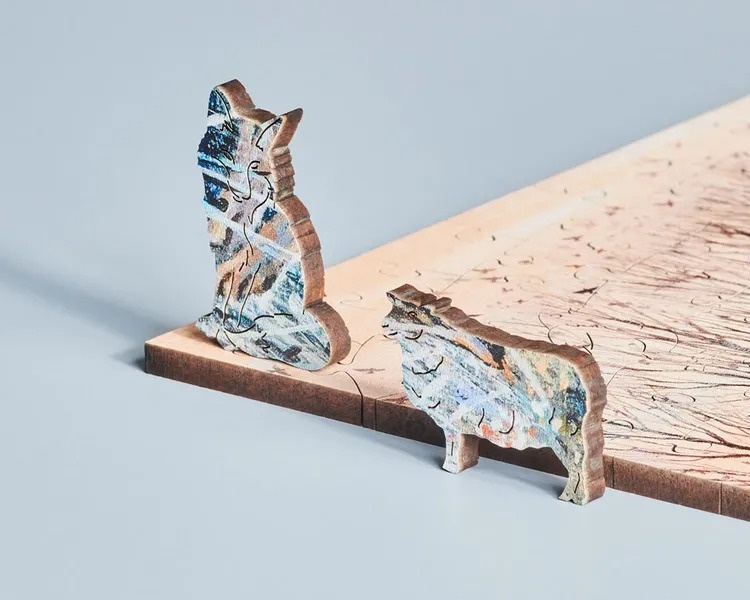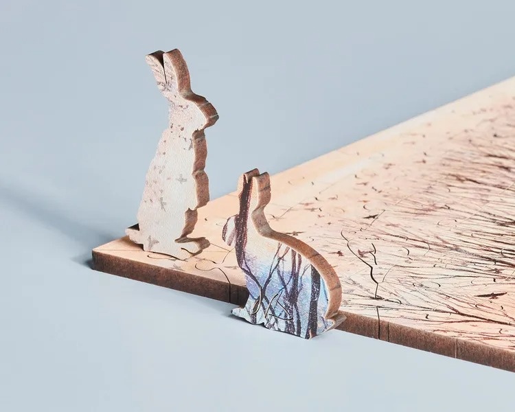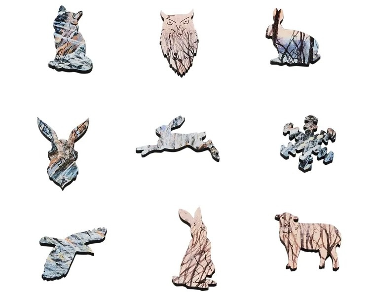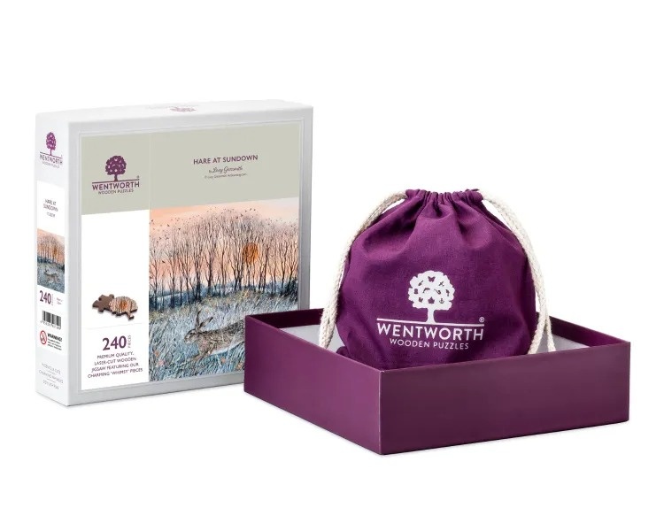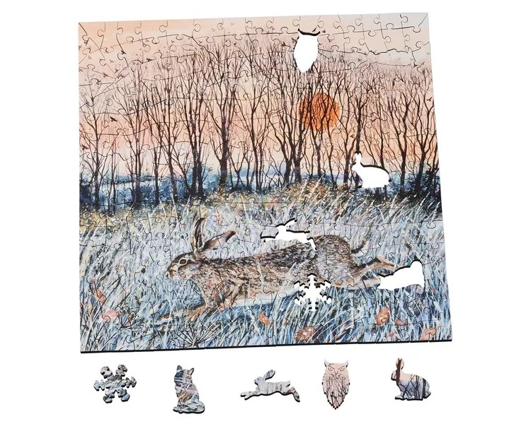 This superb sunset scene with a hare will make a great gift for animal lovers and a unique jigsaw puzzle to enjoy during the winter. It is complete with wonderful wildlife whimsies and irregularly shaped puzzle pieces that make completing this traditional wooden jigsaw puzzle a little trickier than you may think. Wentworth's talented designers love to challenge puzzlers with unusually shaped puzzle pieces and unexpected puzzle cut designs.
