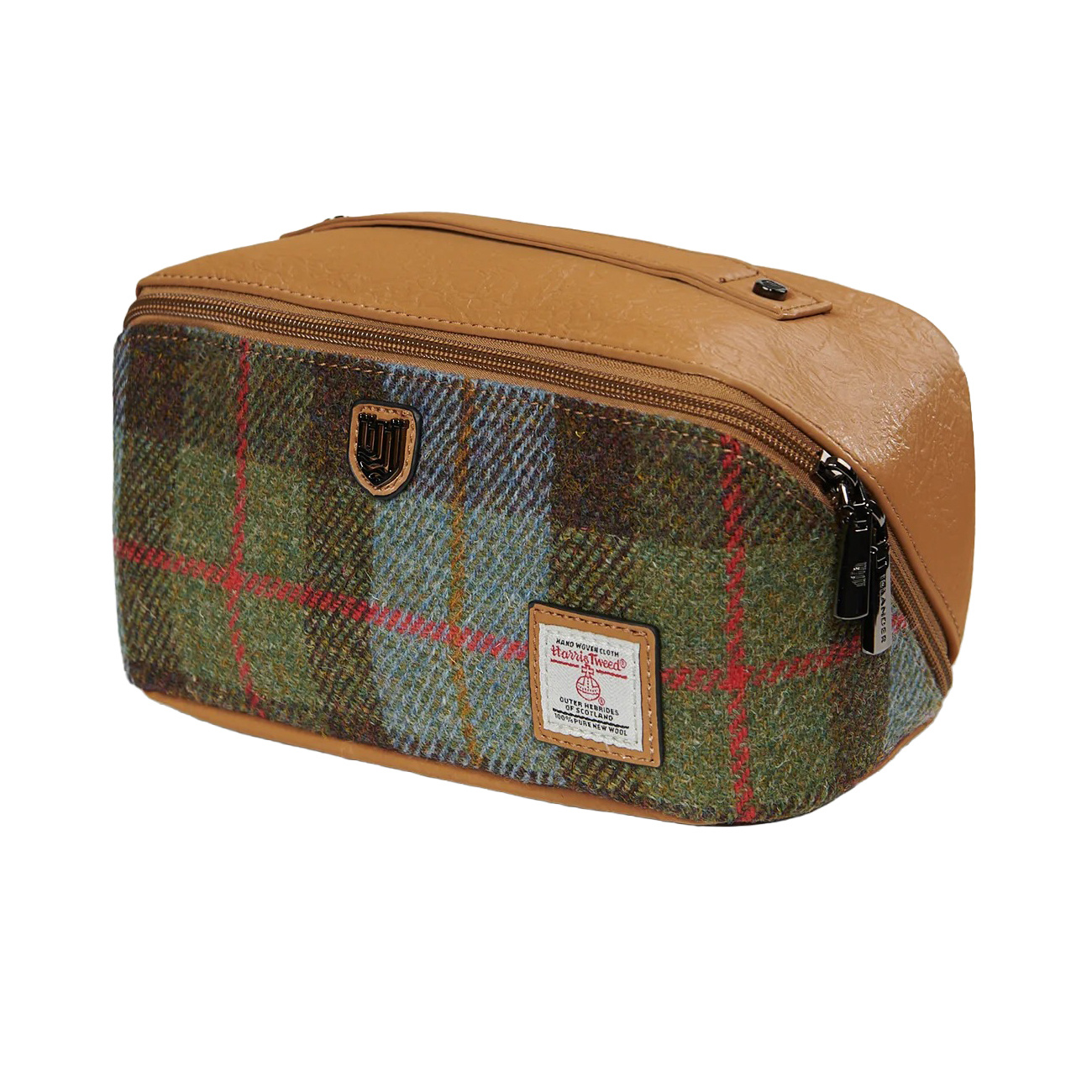 Harris Tweed Chestnut & Blue Tartan Toiletry Bag