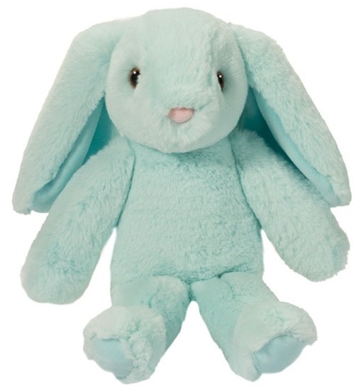 Iris the large floppy bunny is a calm and relaxed friend who is always ready to stop and smell the roses. Calming teal fur and a relaxed floppy body give Iris a peaceful spirit, and are durable enough to last through many years of cuddles. Long, draping ears and a sweet little face make this a lovable companion for your most laid-back days. Surface wash.