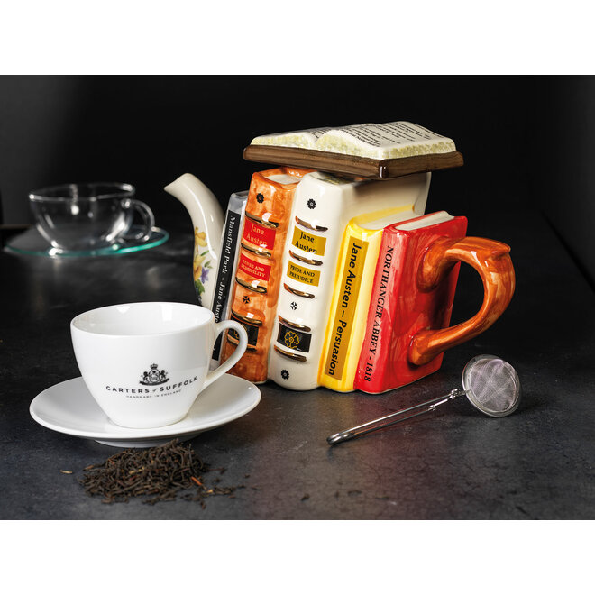 The Jane Austen Books novelty teapot is a fabulous teapot for lovers of Austen to use or admire. It features real gold detailing and a glossy glaze.