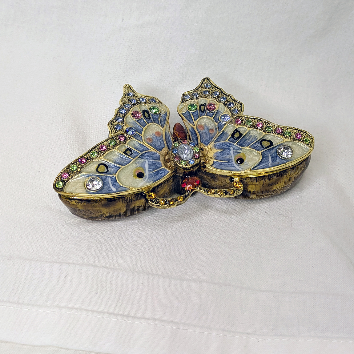 Finished in a vibrant enamel and accentuated with lively Austrian Swarovski crystals, this butterfly is a perfect gift for everyone. Inside the box is a mini matching figurine on a 20 inch chain.