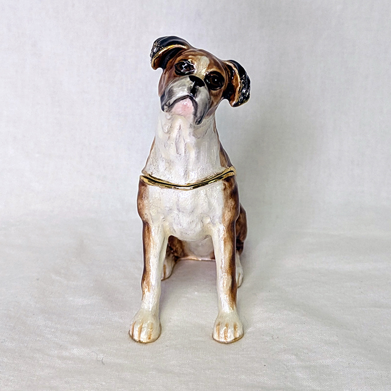 Finished in a vibrant enamel and accentuated with lively Austrian Swarovski crystals, this Boxer is a perfect gift for everyone. Inside the box is a mini matching figurine on a 20 inch chain.