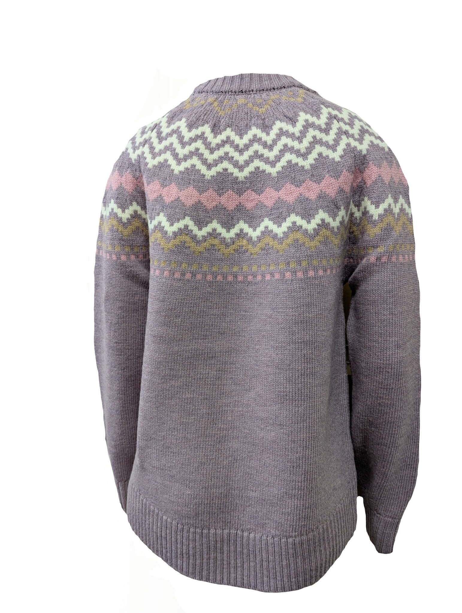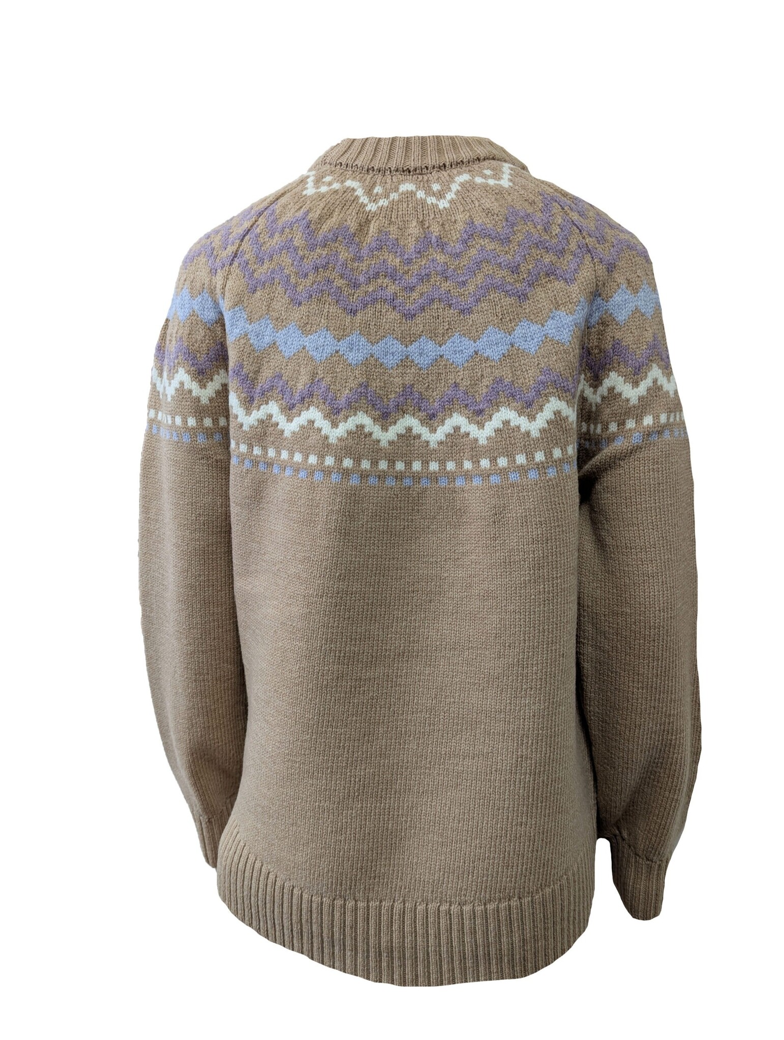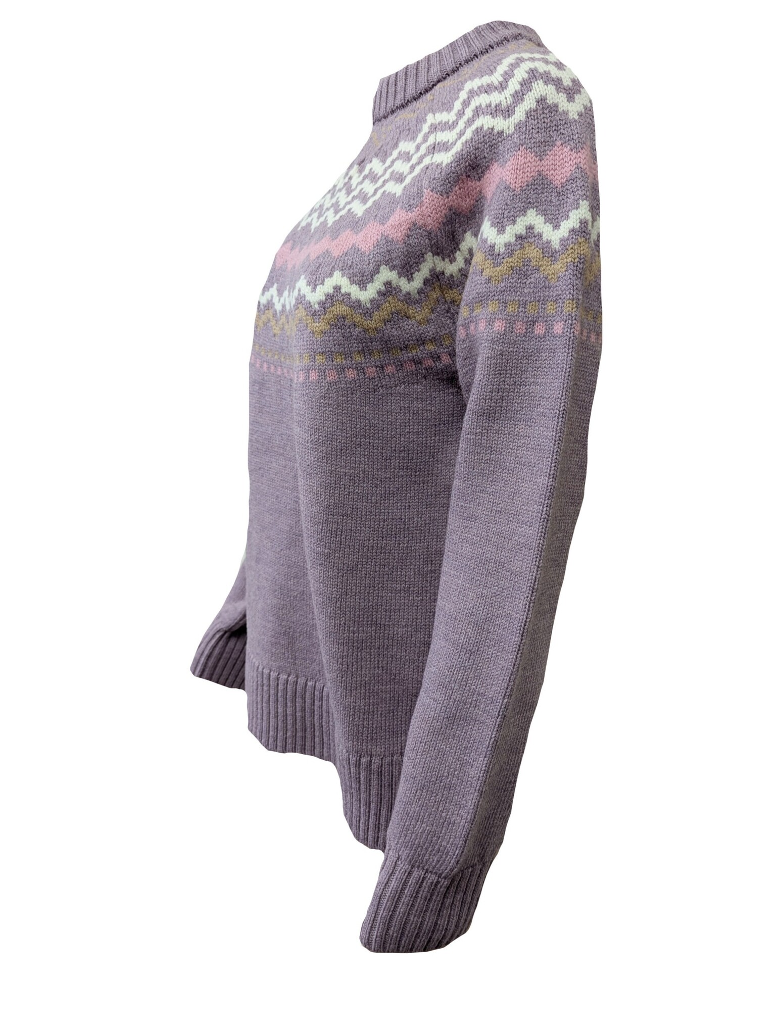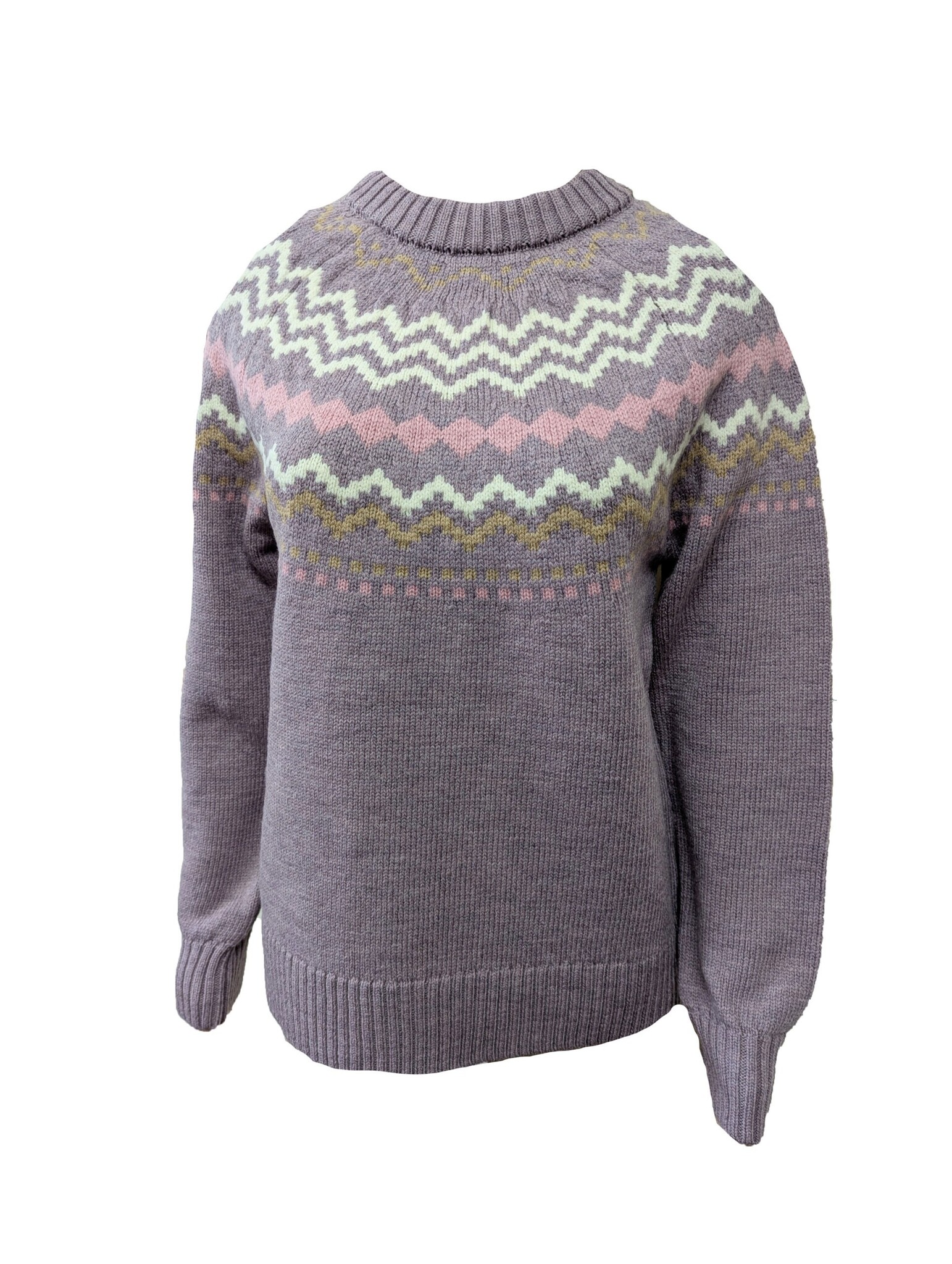 Expertly knitted from 100% premium Merino wool, this luxuriously soft and warm ladies’ crew neck features a classic Fair Isle pattern that brings a sense of timeless charm to any wardrobe. It showcases intricate detailing on the cuffs and hem for a refined, distinctive finish. Available in two elegant colorways, it’s a perfect blend of traditional craftsmanship and modern design.