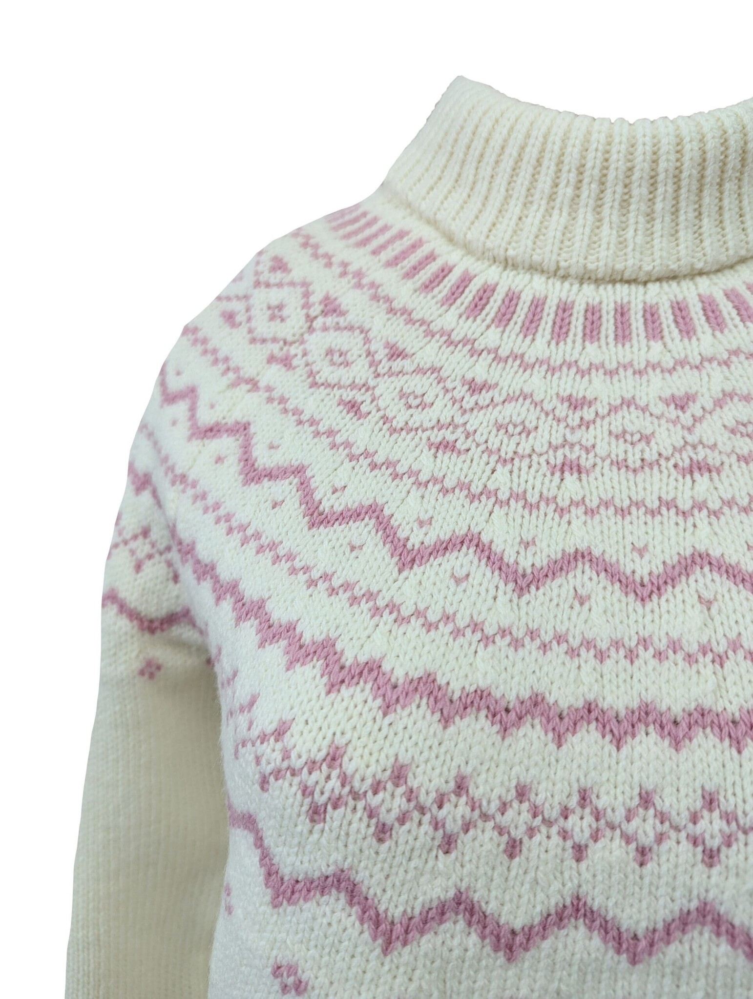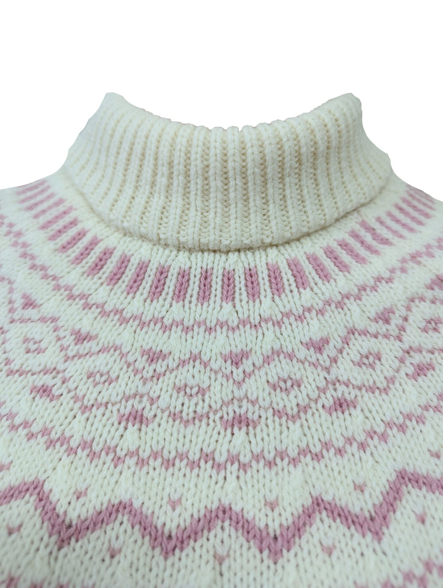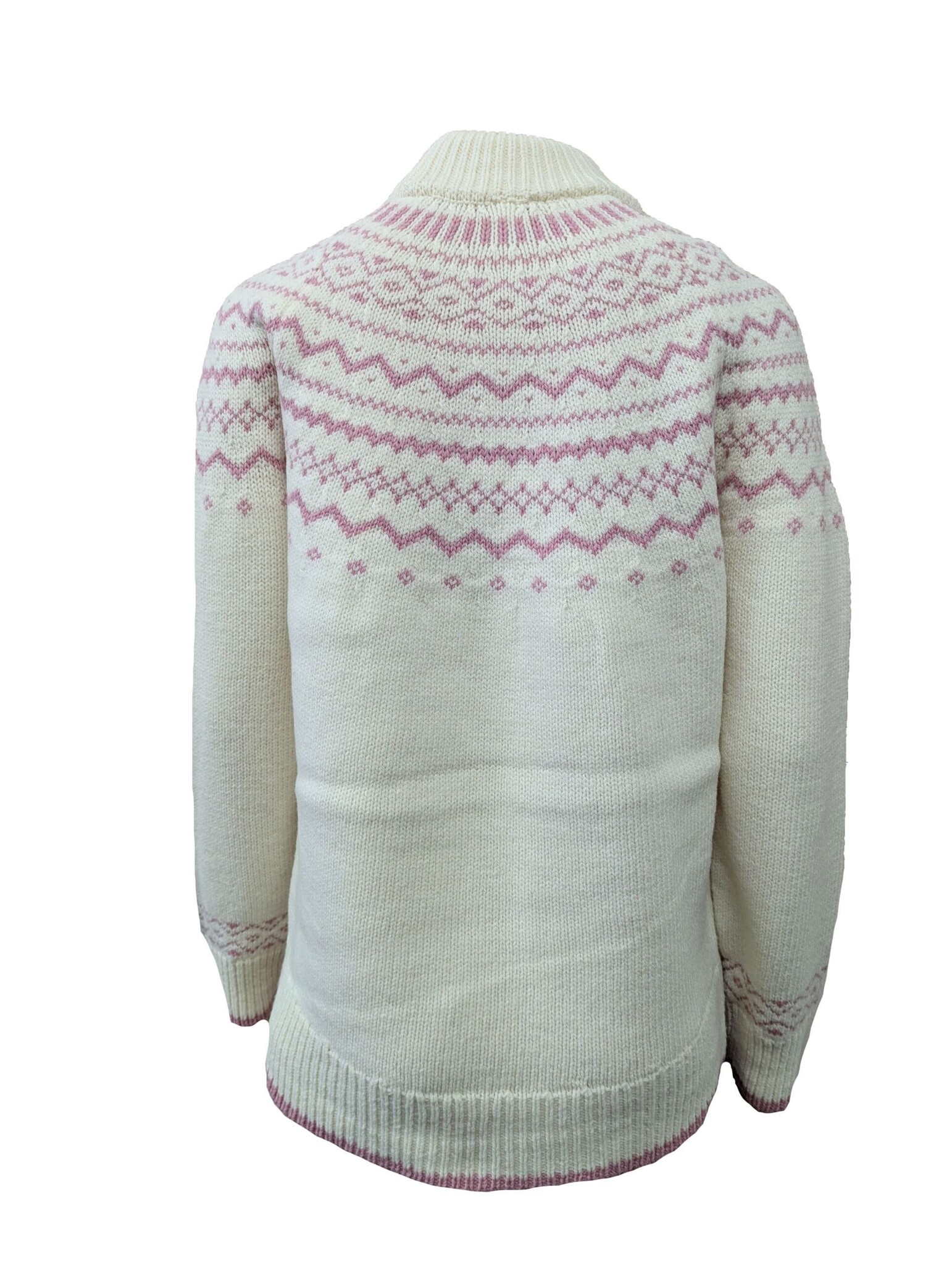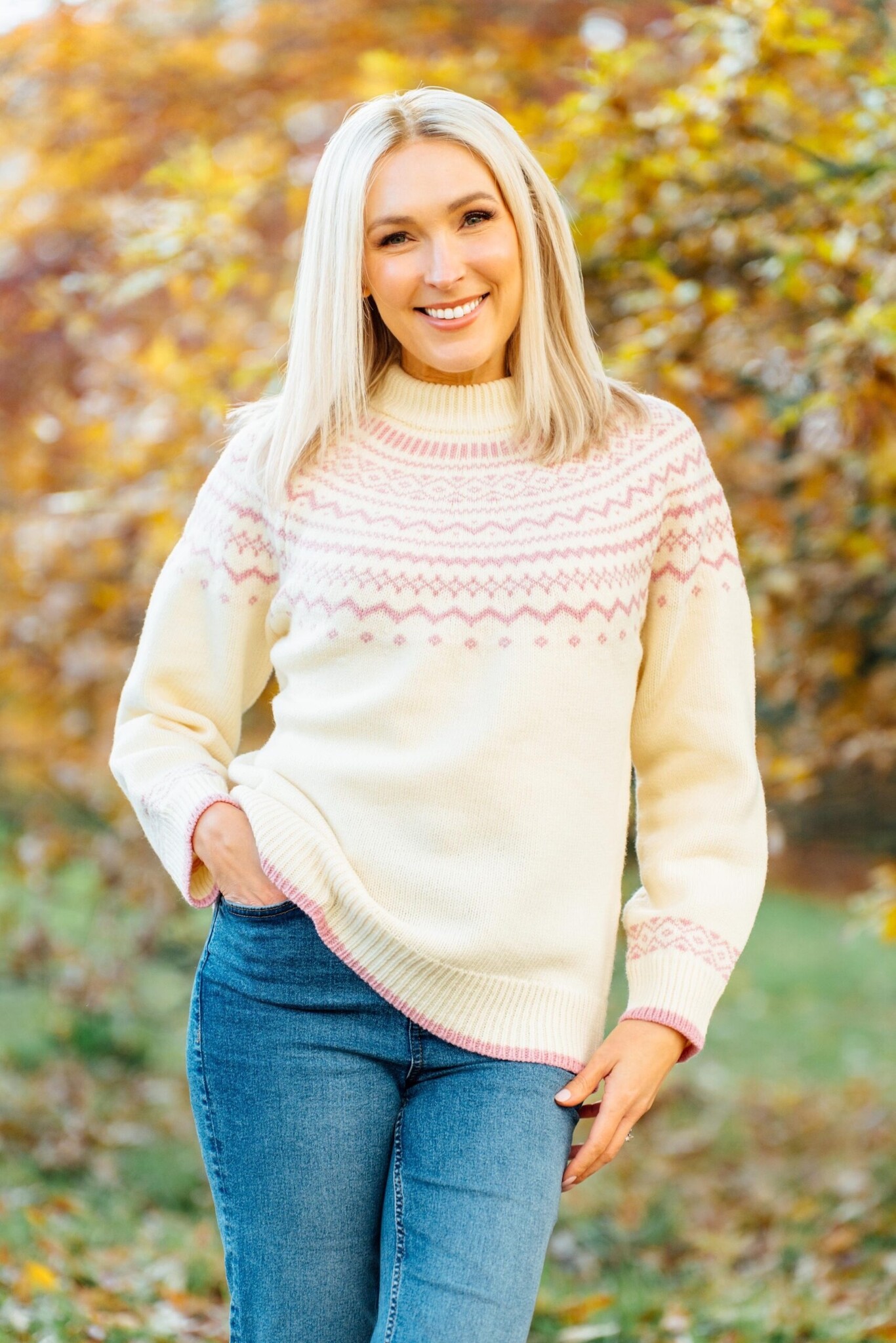 Expertly knitted from 100% premium Merino wool and with a thick collar, this luxuriously soft and warm ladies’ crew neck features a classic Fair Isle pattern that brings a sense of timeless charm to any wardrobe. It showcases intricate detailing on the cuffs and hem for a refined, distinctive finish. It’s a perfect blend of traditional craftsmanship and modern design.