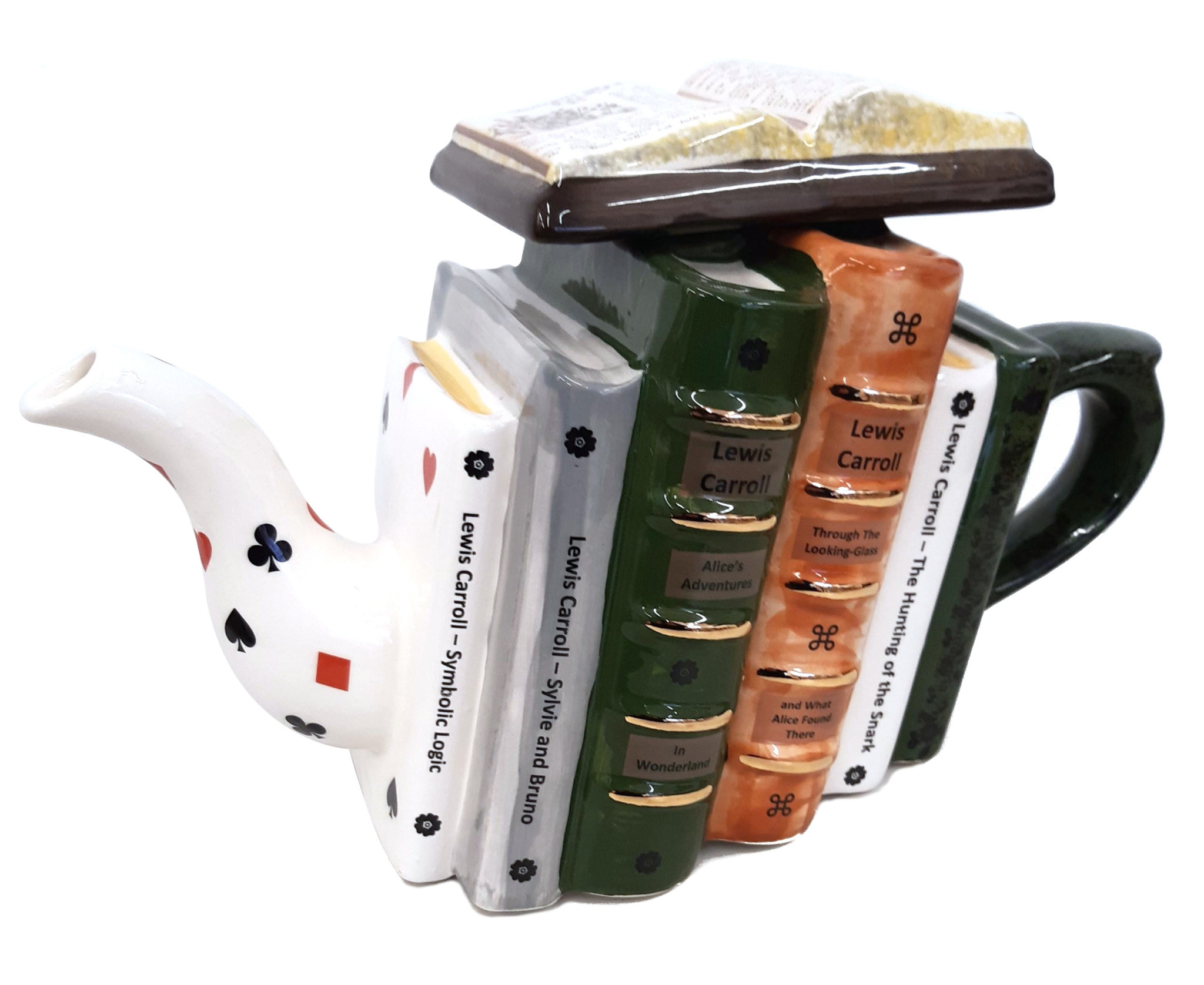 The Carters of Suffolk Lewis Carroll Books Teapot is a full-size teapot that pays homage to Lewis Carroll. It is handmade and hand-painted in the UK using production methods developed over 250 years ago. Fully functional, it is the perfect pot for elevenses, afternoon tea, or any other time you fancy a brew. Due to the hand-finishing process, no two teapots are the same, ensuring your selected teapot will be unique.