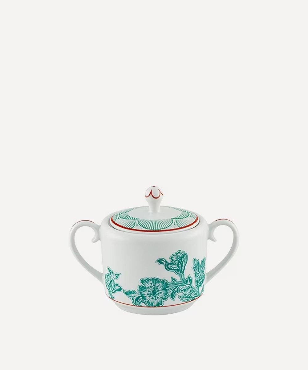 This lidded sugar bowl features a bold, vibrant Lotus design inspired by Liberty’s illustrious history of pattern, print, and textiles. Ideal for teatime, it is dishwasher and microwave safe.
