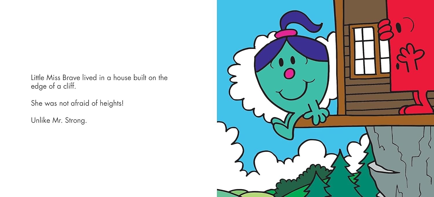 Little Miss Brave is fearless in the face of danger, and her inner strength is inspiring, particularly for Little Miss Shy. Will Little Miss Brave give Little Miss Shy the strength to stand up for herself?