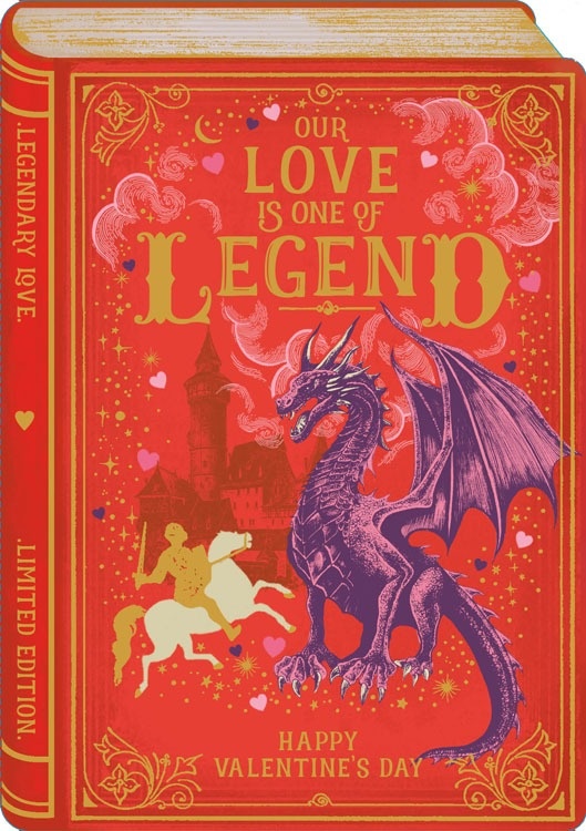 Celebrate an epic love with the Love of Legend Storybook Valentine's Day card. This card is die-cut and features embossing and gold foil. Printed on 280GSM textured board, it comes with an ivory envelope, and is sustainably sourced and recyclable. It is blank inside for a personal message.