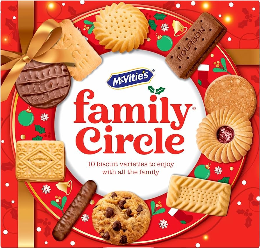 McVitie's Family Circle is jam-packed full of classics with ten different biscuit varieties to enjoy with all the family. Favorites include: Rich Highland Shortie, Crunchy Oat, Shortcake, Custard Creams, Bourbon Creams, Nice, Milk Chocolate Digestives, Milk Chocolate Finger, Jam Sandwich Creams, and Choc Chip Cookie. Family favorites to bring them all round!