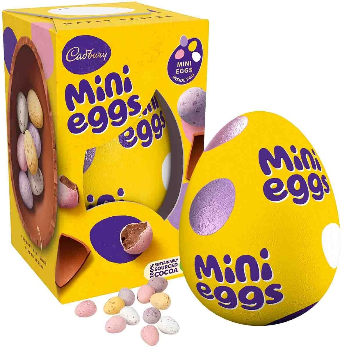 A hollow Cadbury Easter Egg filled with candy-coated mini eggs! This delicious Easter egg has been made with the world-class British Cadbury Dairy Milk chocolate.