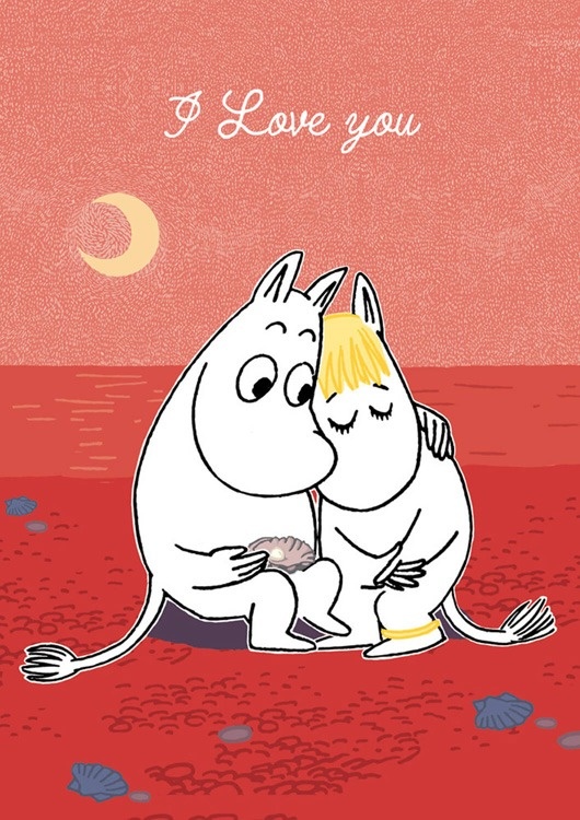 Express your feelings with the whimsical charm of Moomin, with this card that says "I love you". It is blank inside for a personal message.