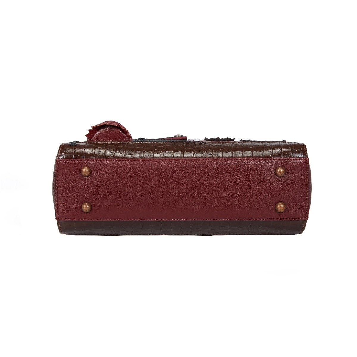 - Printed and embossed vegan leather with hand-stitched details