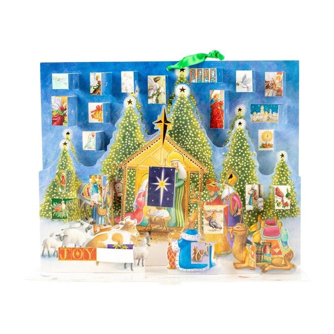This advent calendar is constructed from durable cardstock and features a nativity illustration. Pull open one of the small numbered die-cut doors each day to build anticipation and keep track of your Christmas countdown!
