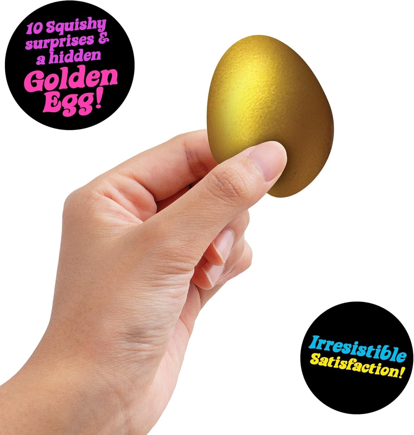 Enjoy a fun hunt to discover NeeDoh squishes, perfect for Easter or springtime celebrations. Crack open 10 groovy surprises, including one special golden squish. The box features a mix of Teenie NeeDoh favorites and new collectible squishes.