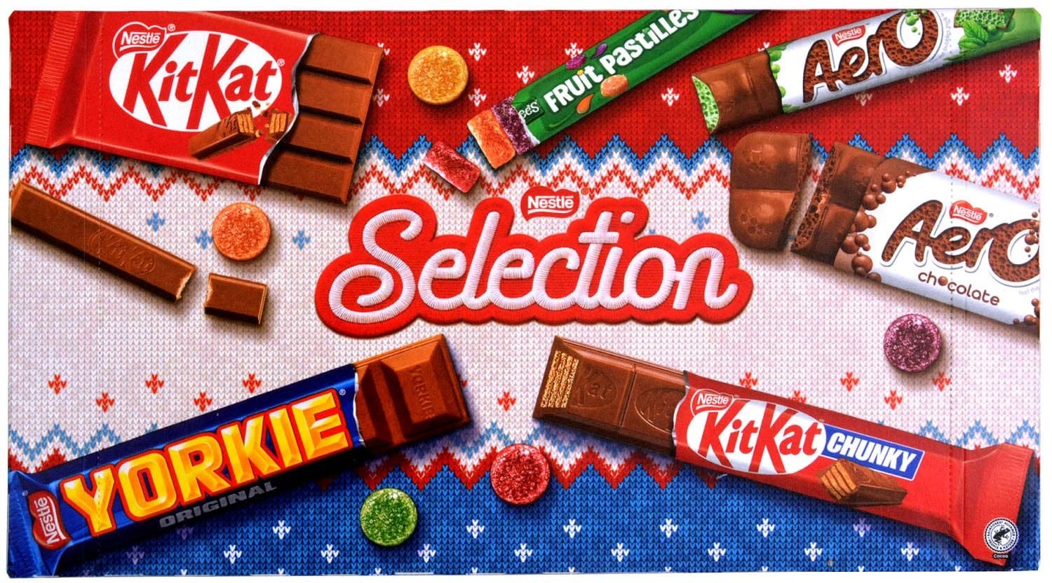 This selection box of iconic chocolate treats contains Rowntree's Fruit Pastilles, Aero, KitKat, and Yorkie packs, making this pack an ideal gift.