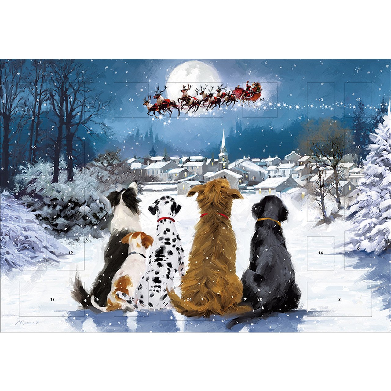 The Caltime Night Before Advent Calendar features festive illustrations on the front and behind 24 small, fold-out doors.