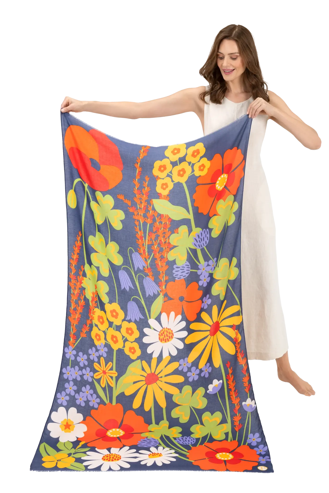Wrap yourself in a nordic dream with this gorgeous print scarf. Bold woodcut style florals and a vintage palette make this a truly timeless design.