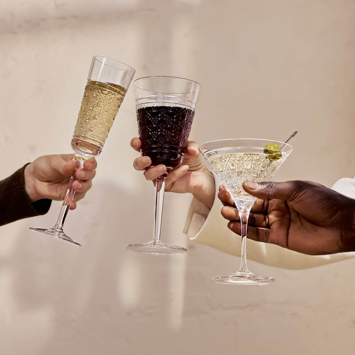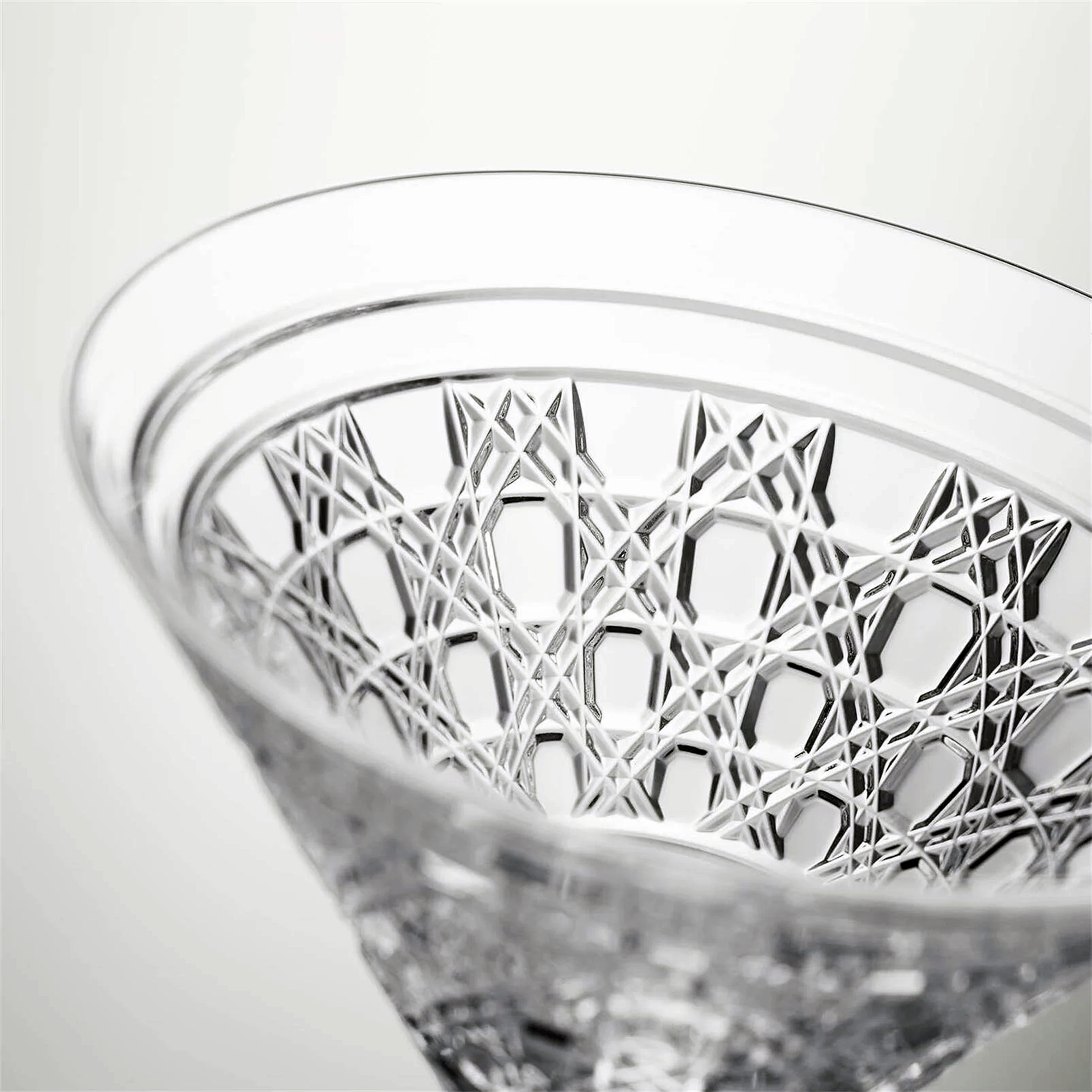 A sophisticated addition to any bar, the Opulence Martini Glass pair is inspired by the intricate textures of Irish basket weaving. The sleek silhouette is elevated by precise crystal cuts that catch the light, enhancing the visual appeal of classic cocktails. Expertly crafted from lead-free crystal, this set offers both functionality and refined elegance, making every sip feel luxurious. Hand wash only.