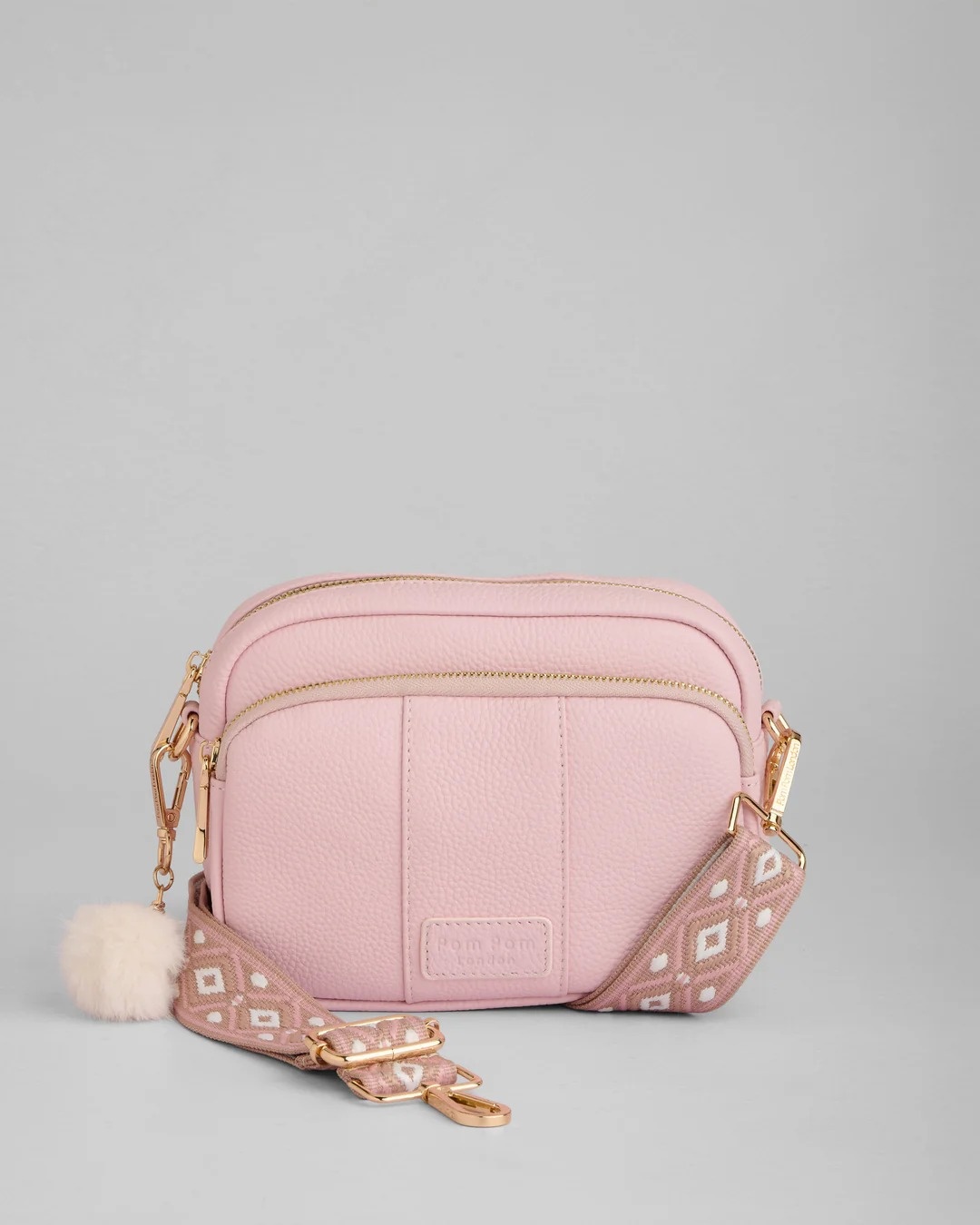 - Accented with Pom Pom London’s iconic gold details
