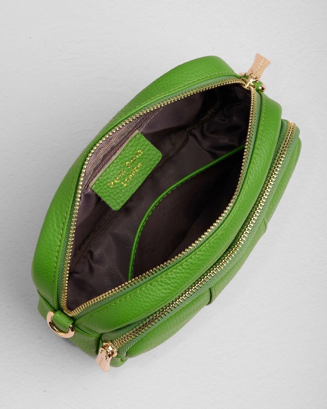 - Accented with Pom Pom London’s iconic gold details