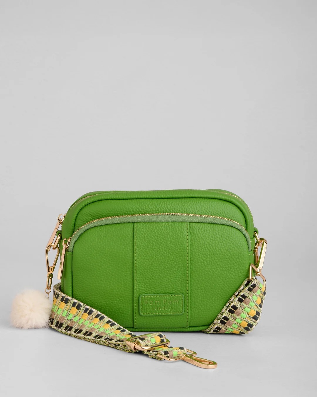 The Original Bag in Frog Green is your new statement summer piece. With three external zip compartments to keep everything organised, it’s as practical as it is playful. Switch up your look with a wide choice of fabric straps: its detachable strap allows you to mix it up by using other Pom Pom London straps, and a double reinforced leather base provides durability. Designed in the UK.